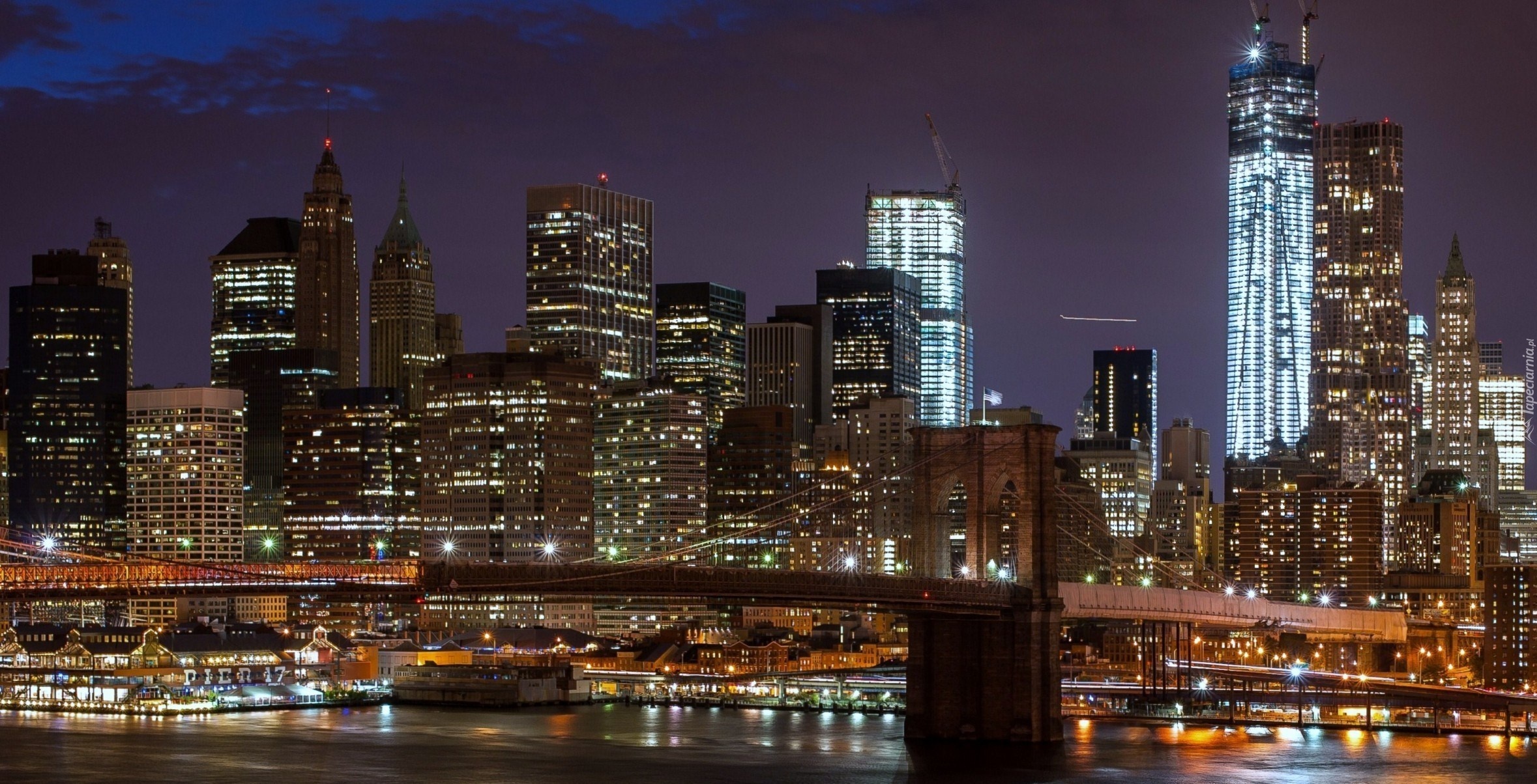 Edytor tapety: Drapacze chmur, Brooklyn Bridge, Manhattan nocą