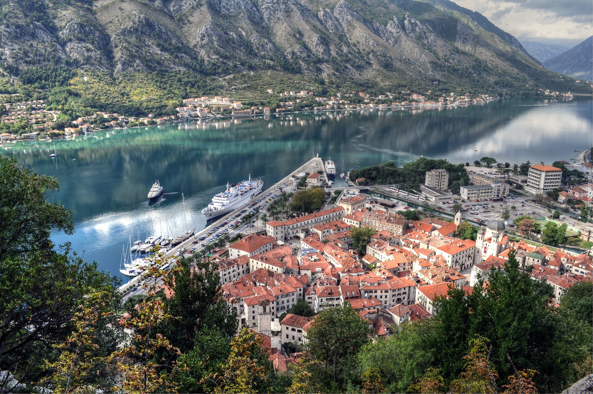 Edytor tapety: Czarnogóra, Kotor, Góry, Miasto, Statki