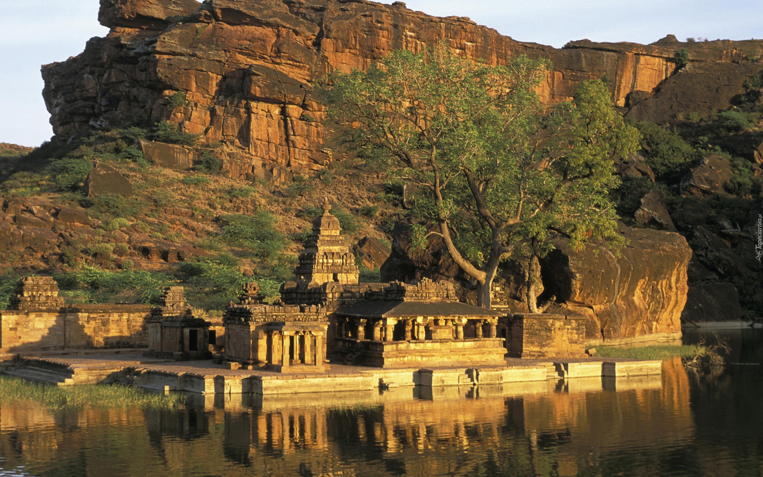 Edytor tapety: Świątynia, Karnataka, Indie, Skały