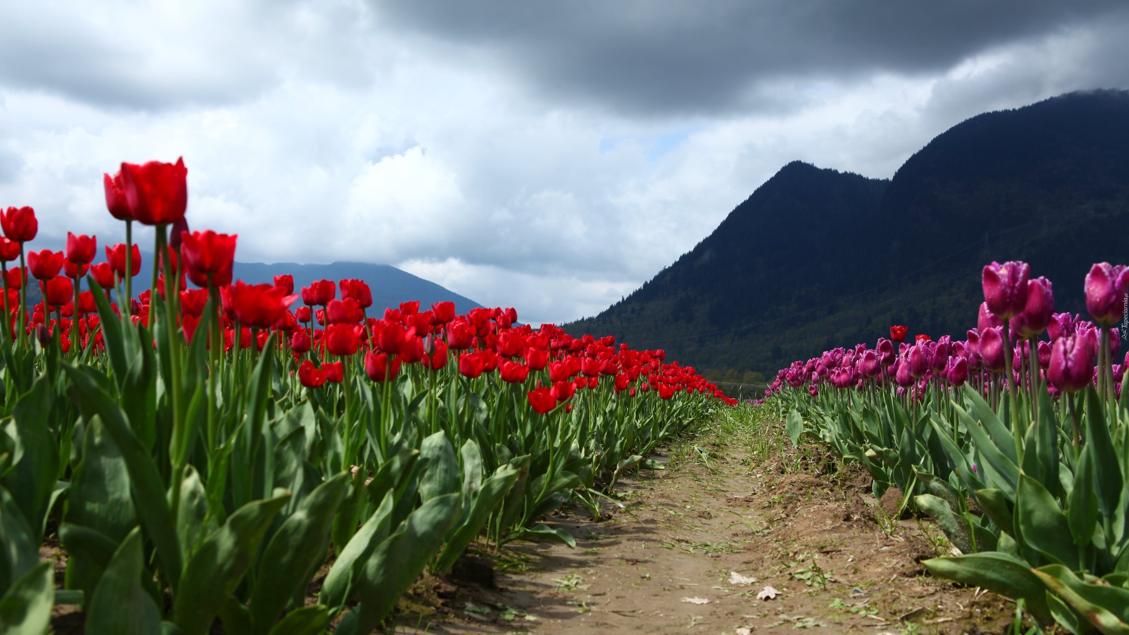 Edytor tapety: Niebo, Chmury, Góry, Tulipany, Ścieżka