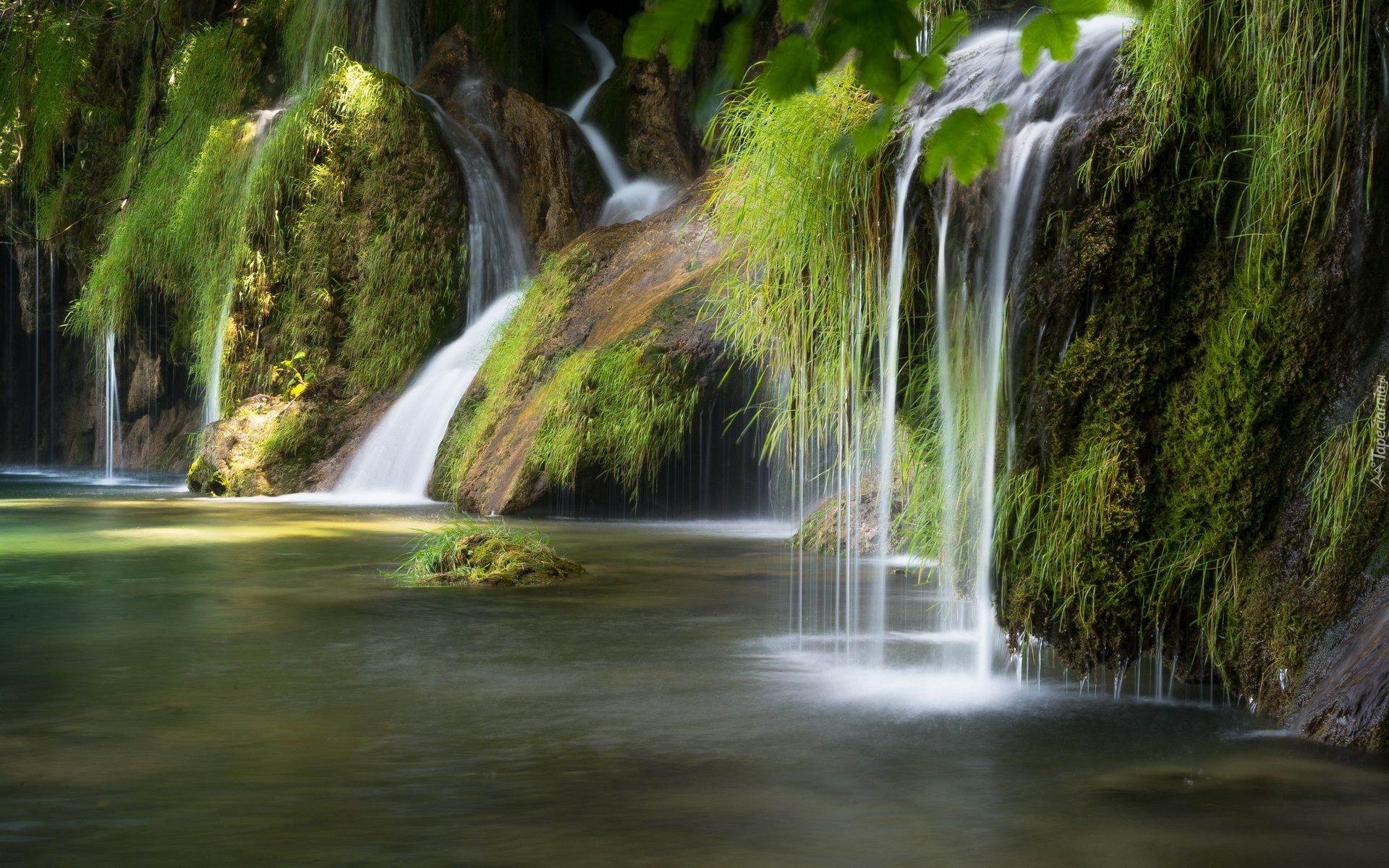Edytor tapety: Wodospad, Omszałe, Skały