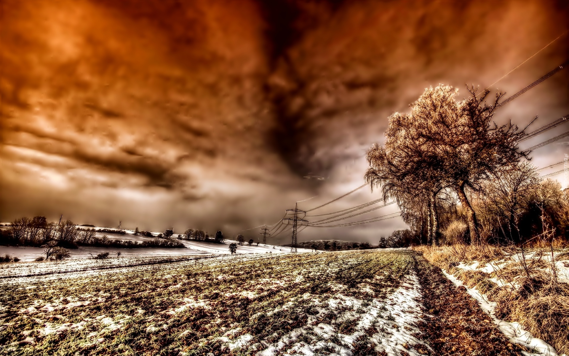 Edytor tapety: Zima, Pole, Drzewa