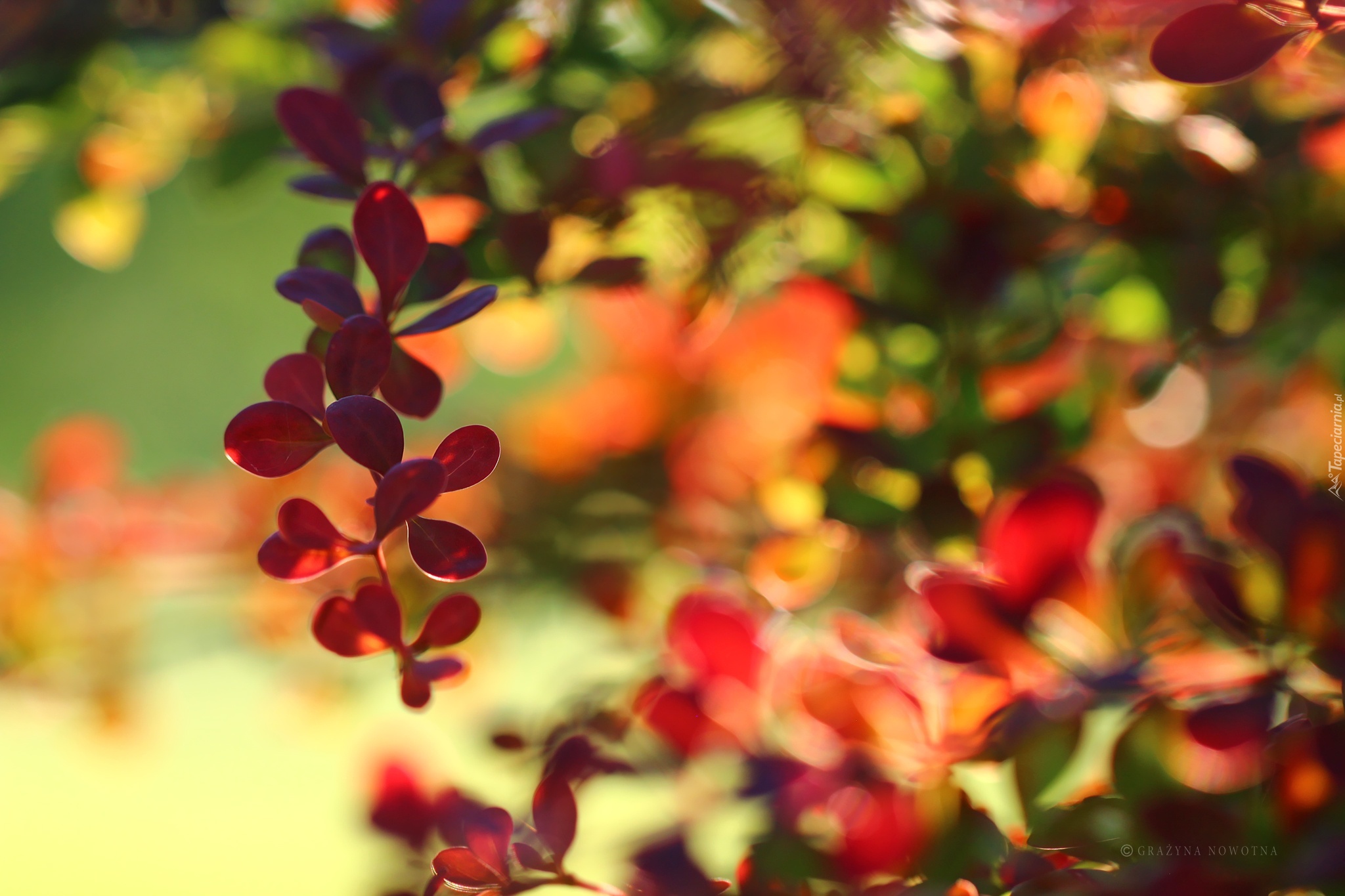 Edytor tapety: Berberys Thunberga, Czerwone, Liście, Krzew