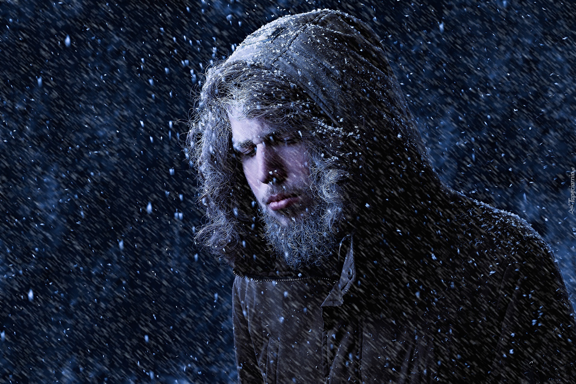 Edytor tapety: Zima, Śnieg, Mężczyzna, Broda, Kaptur