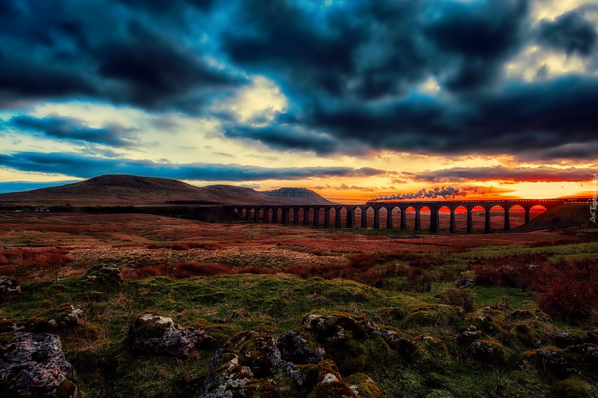 Edytor tapety: Zachód, Słońca, Chmury, Most
