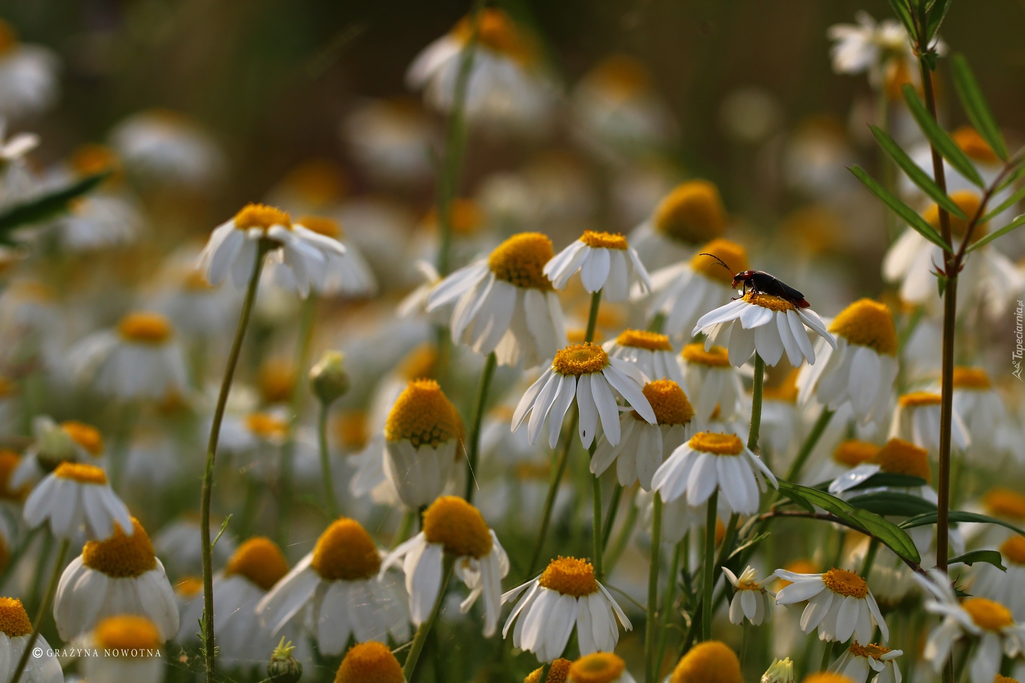 Edytor tapety: Rumianek, Białe, Kwiaty, Robak