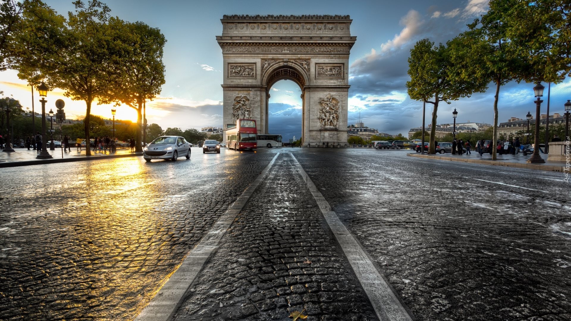 Edytor tapety: Francja, Paryż, Ulica, Łuk Triumfalny, Samochody, Autobusy, Drzewa