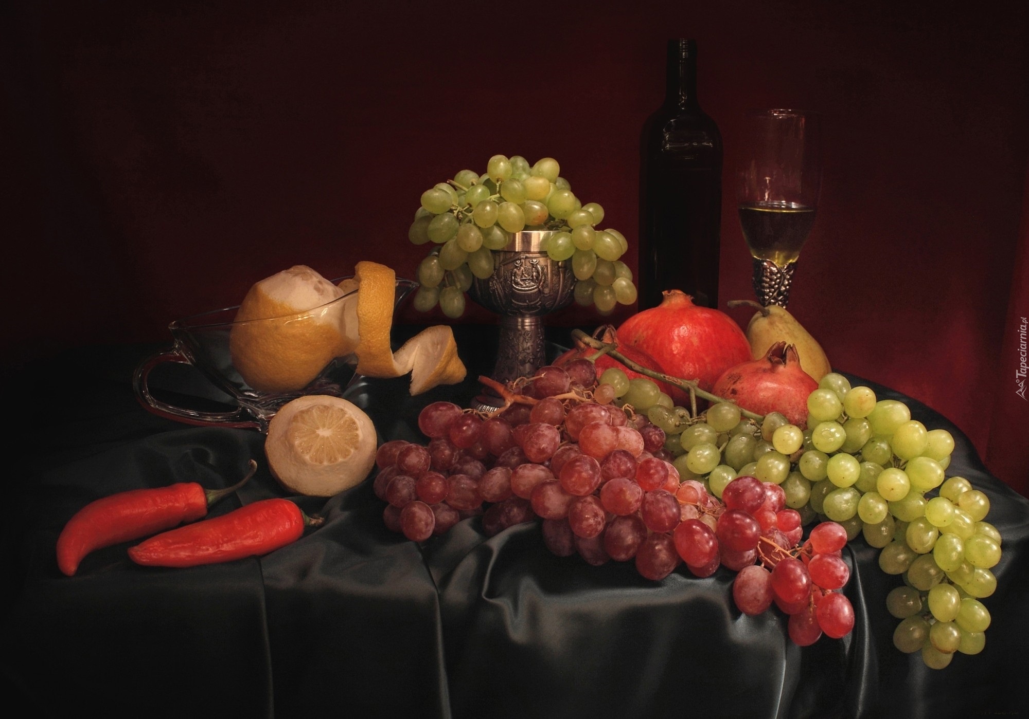 Edytor tapety: Owoce, Winogrona, Granaty