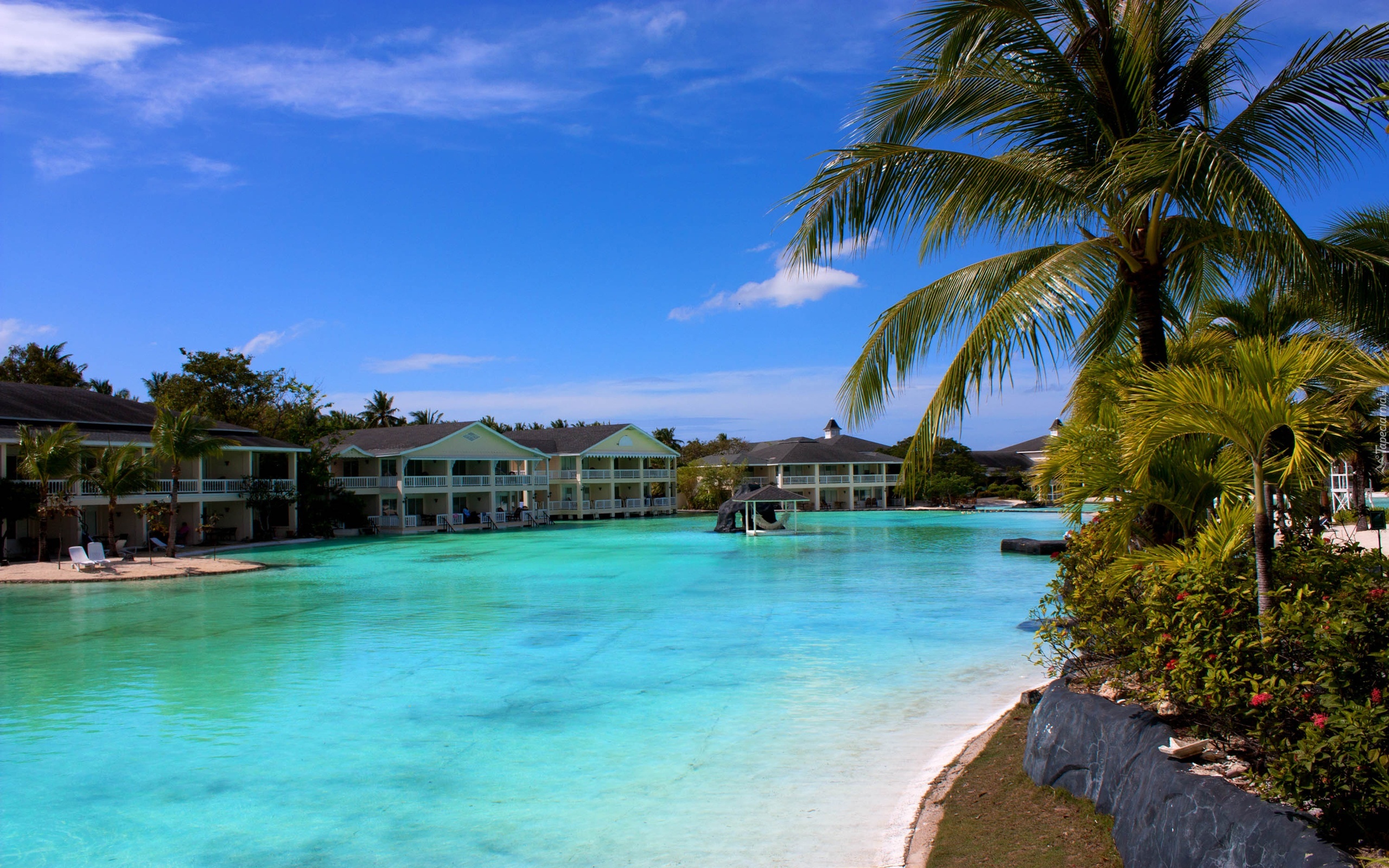 Edytor tapety: Hotel, Morze, Palmy