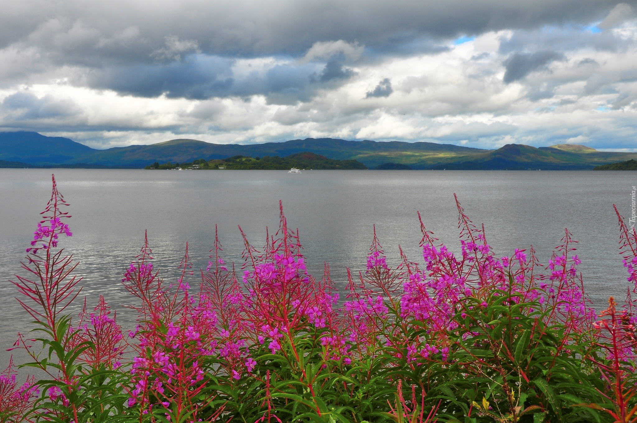 Edytor tapety: Jezioro, Niebo, Kwiaty