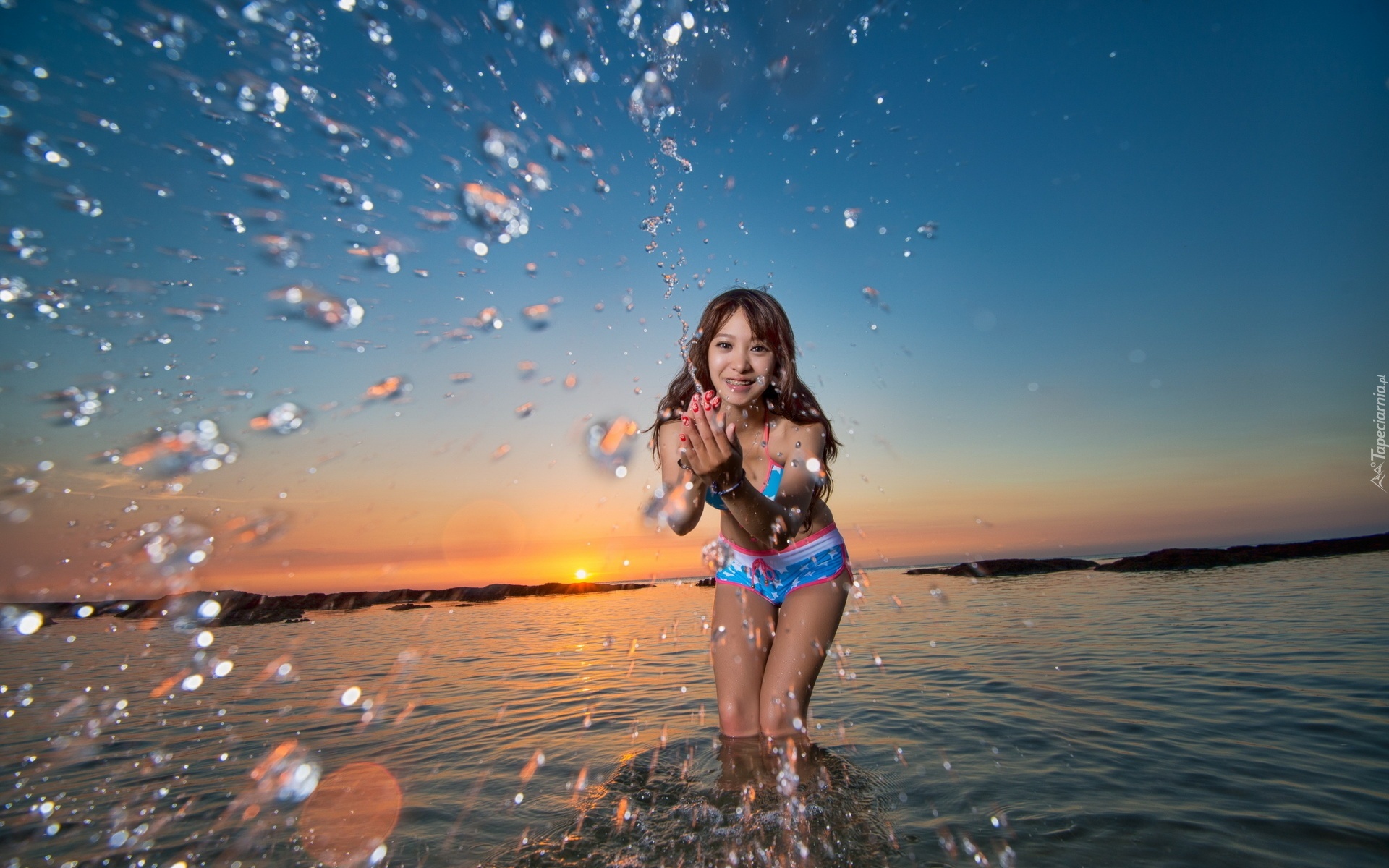 Edytor tapety: Kobieta, Zachod, Słońca, Morze, Krople