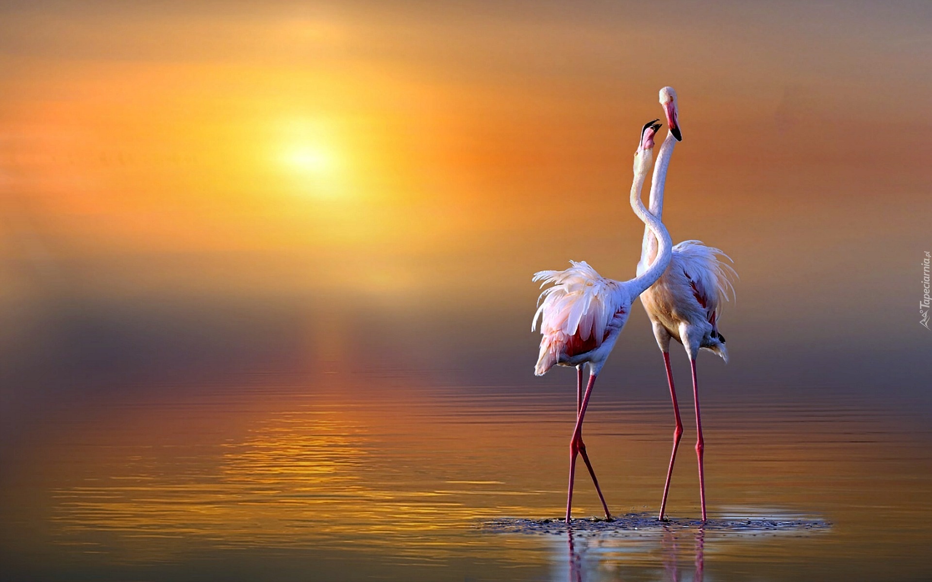 Edytor tapety: Wschód, Słońca, Flamingi