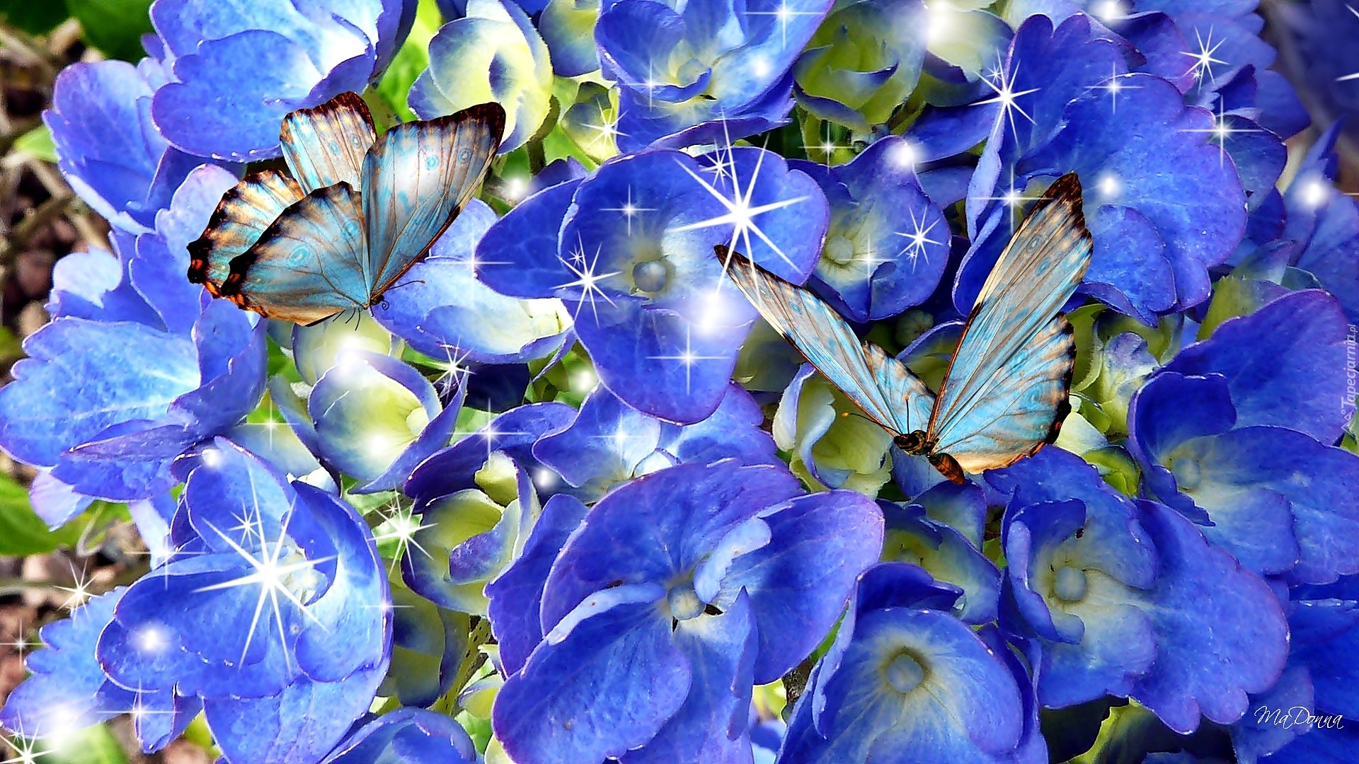 Edytor tapety: Hortensja, Motyle