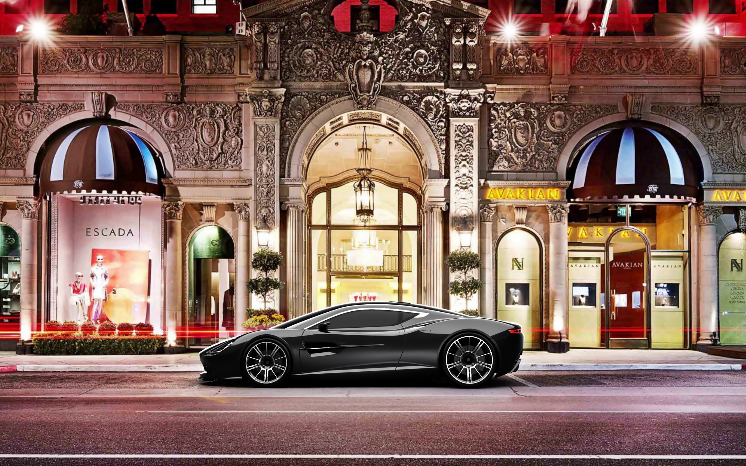 Edytor tapety: Aston, Martin, DBC, Noc, Ulica, Sklepy