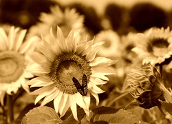 Edytor tapety: Kwiaty, Sloneczniki, Motyl