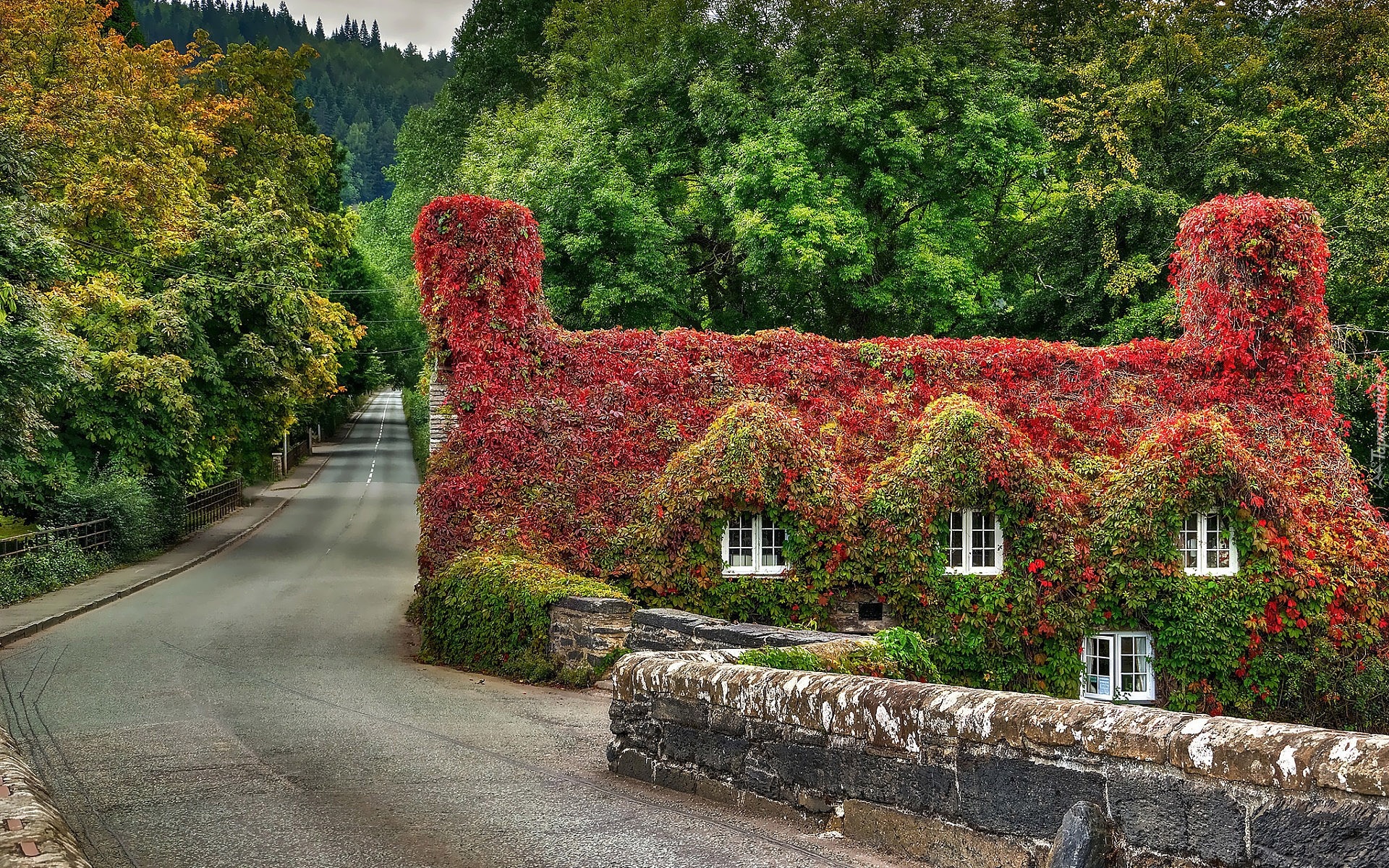 Edytor tapety: Jesień, Dom, Liście, Droga, Las