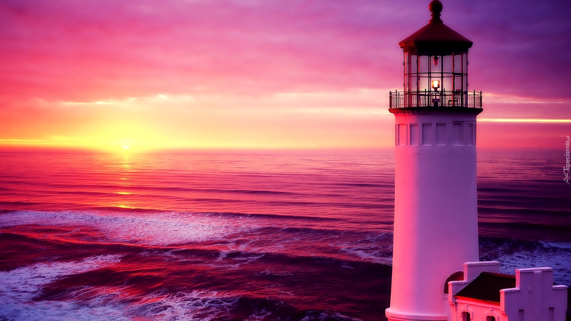 Edytor tapety: Morze, Zachód, Słońca, Latarnia, Morska
