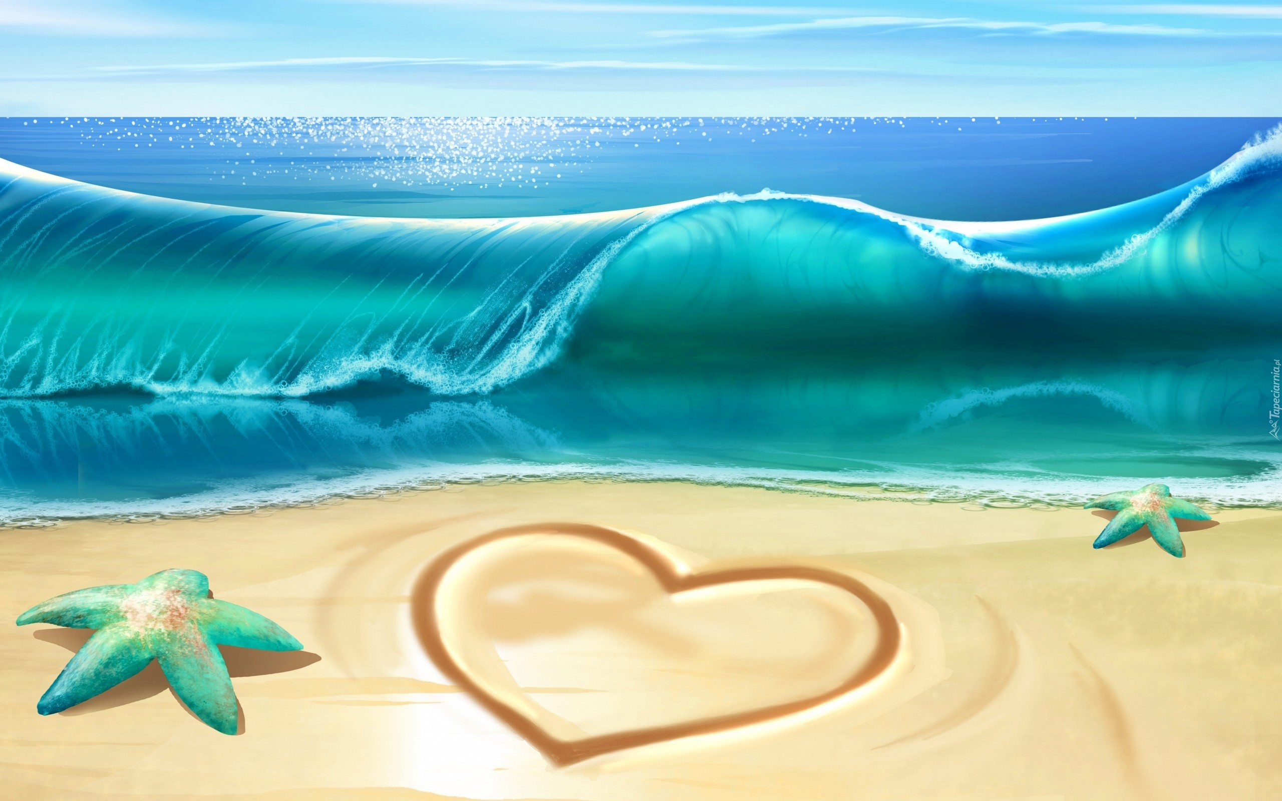Edytor tapety: Grafika, Morze, Plaża, Serce