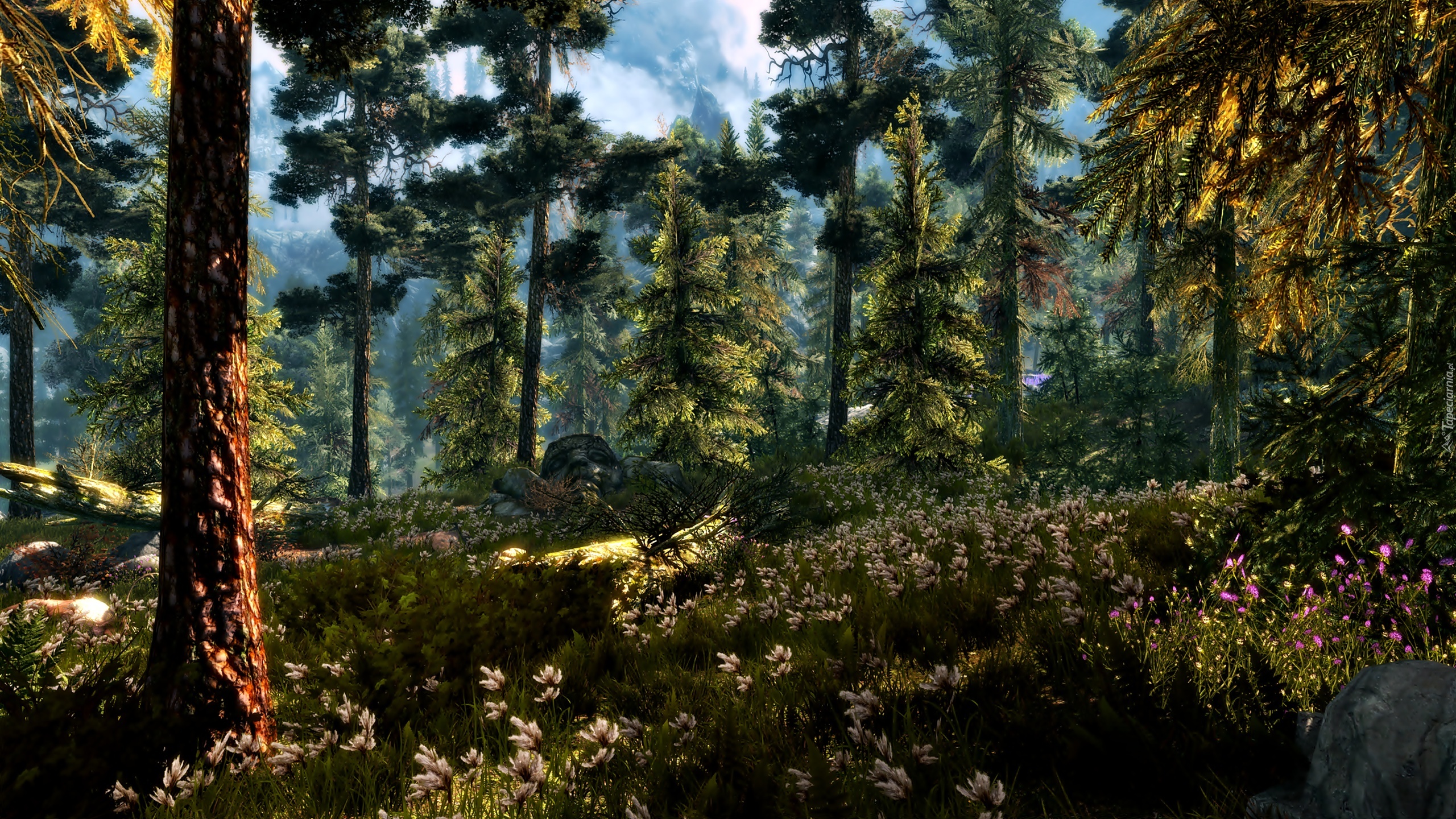 Edytor tapety: Las, Polana, Kwiaty, Przebijające, Światło