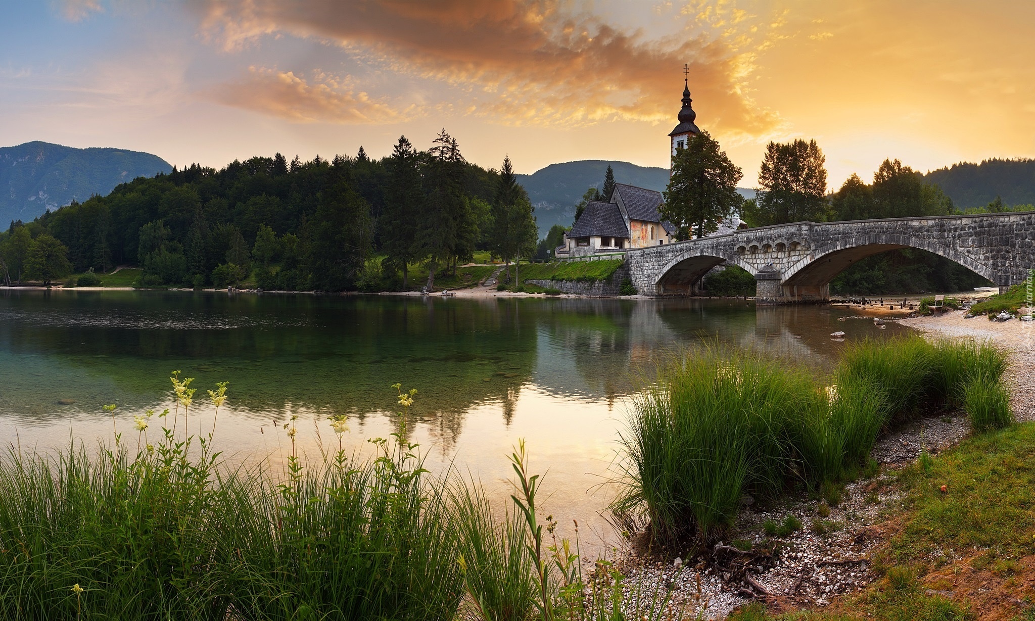 Edytor tapety: Jezioro, Bohinj, Most, Słowenia