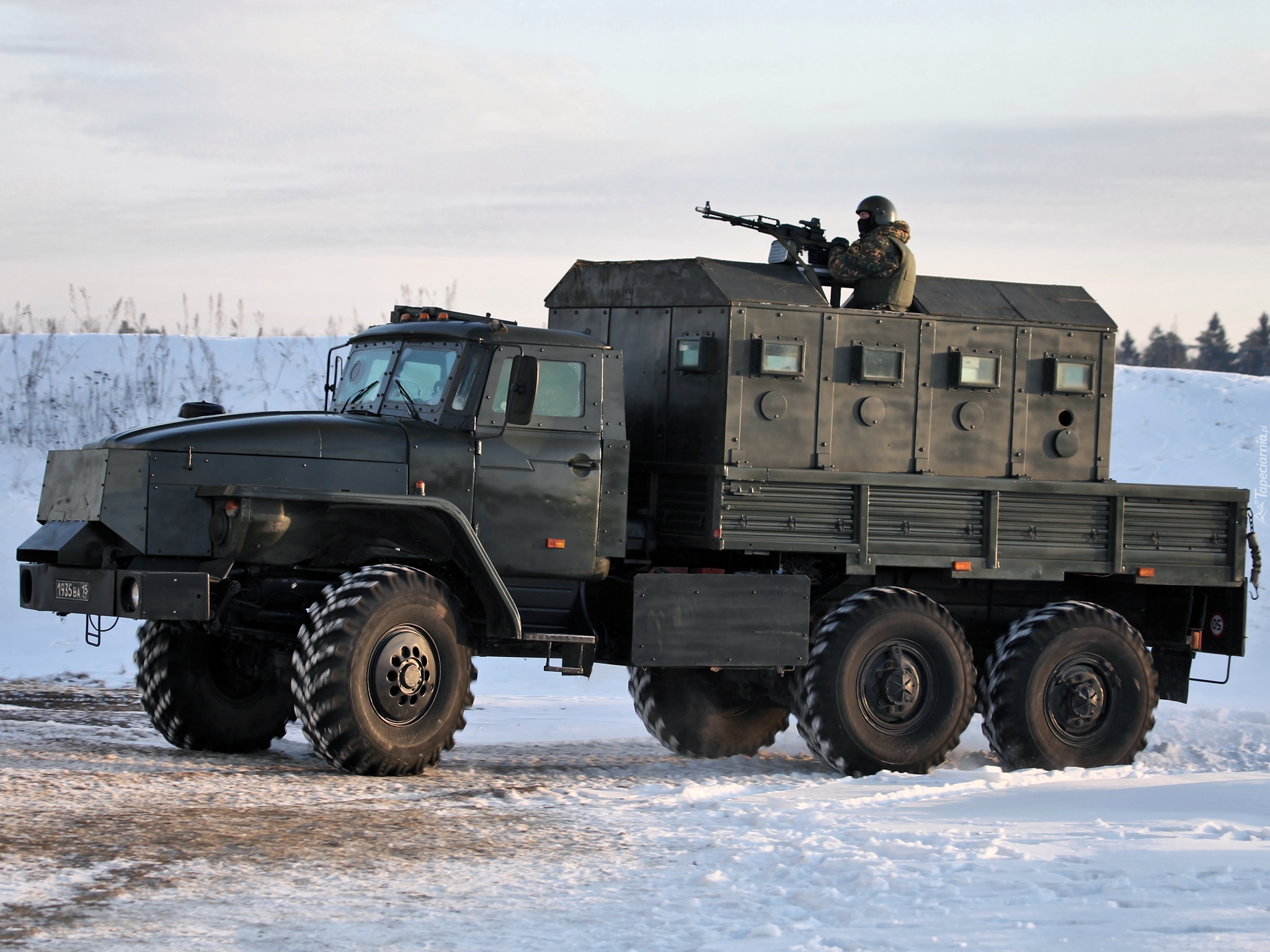 Edytor tapety: Ciężarówka, Wojskowa, Żołnierz, Zima