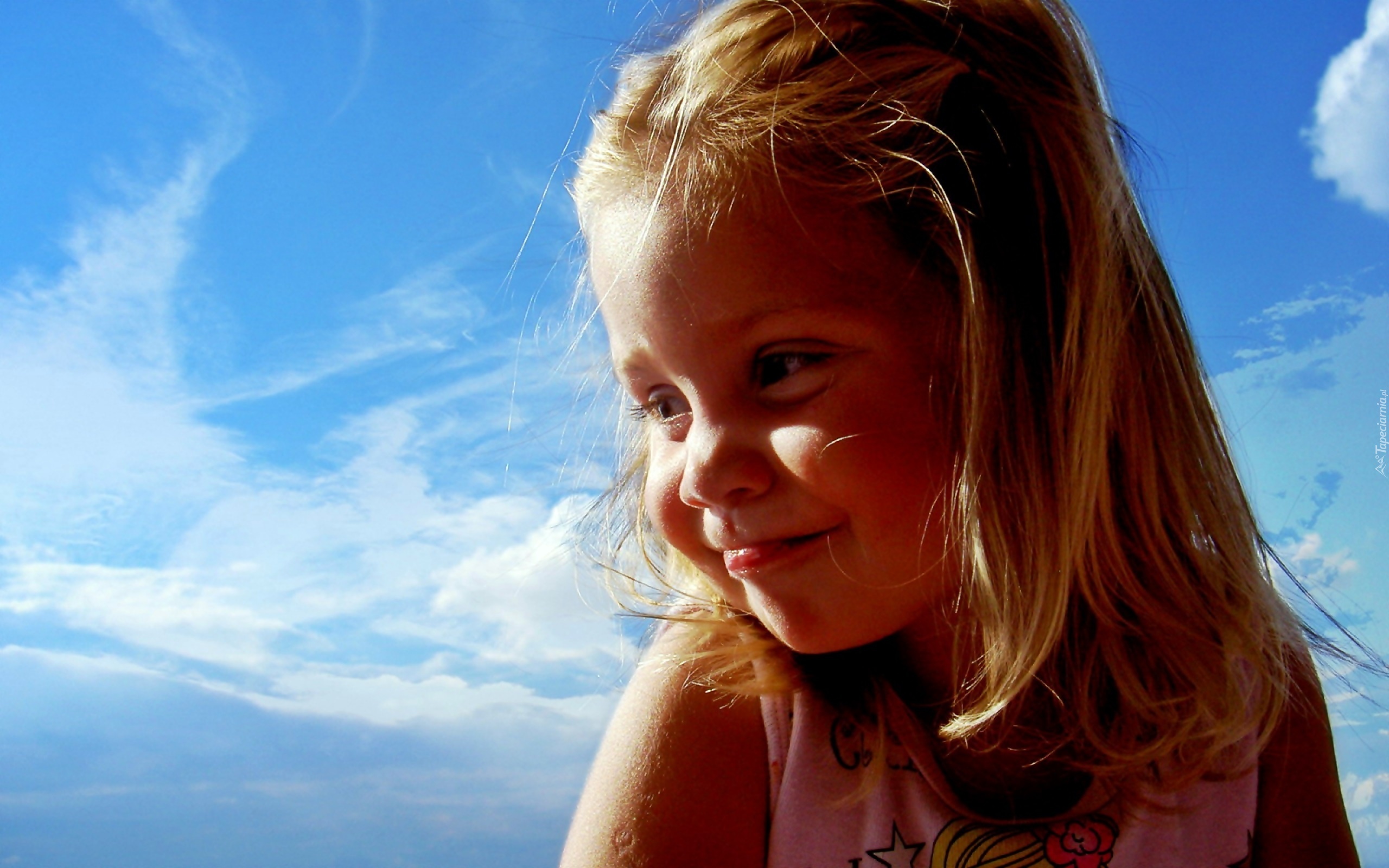 Edytor tapety: Dziewczynka, Uśmiech, Niebo, Obłoki