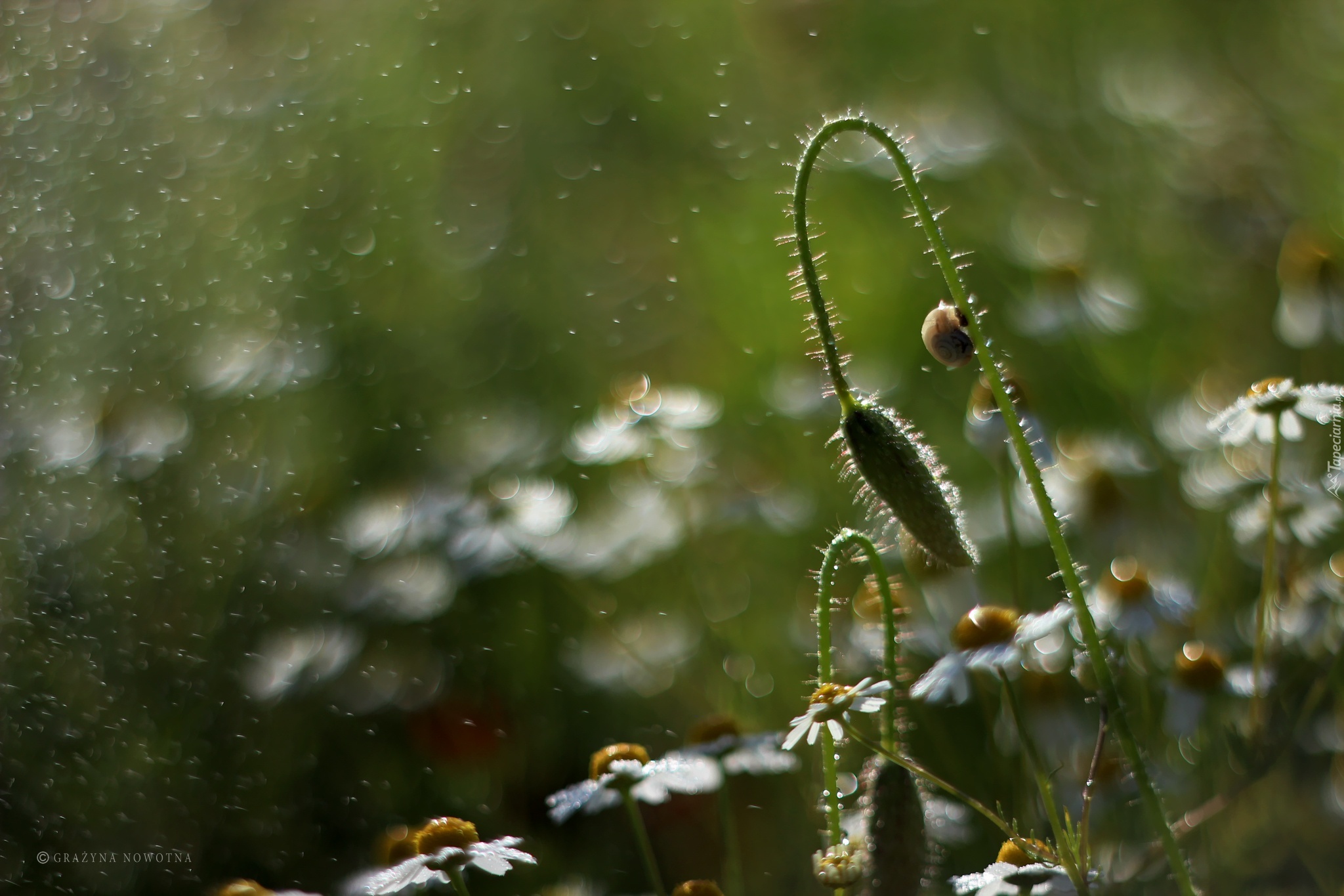 Edytor tapety: Rumianek, Pąk, Krople, Ślimak