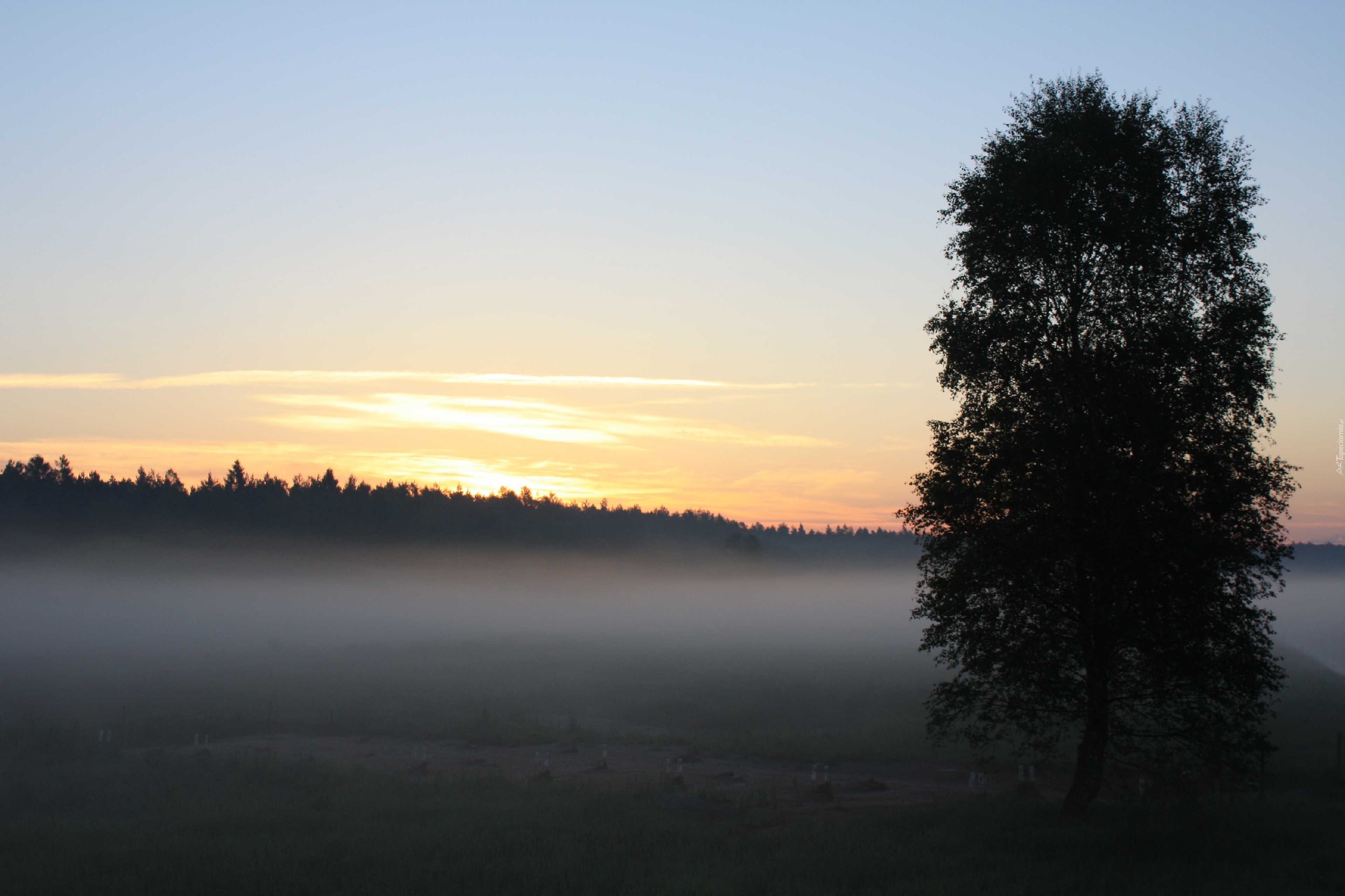Edytor tapety: Wschód słońca, Polana