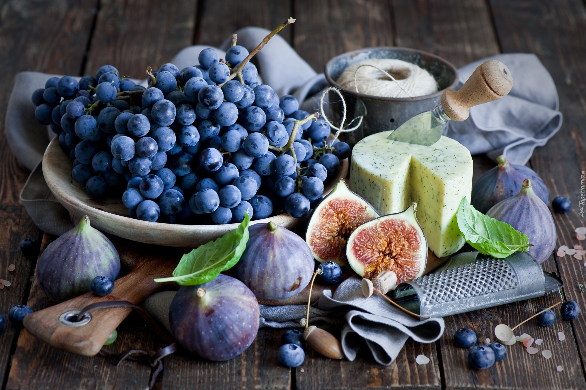 Edytor tapety: Winogrona, Figi, Ser