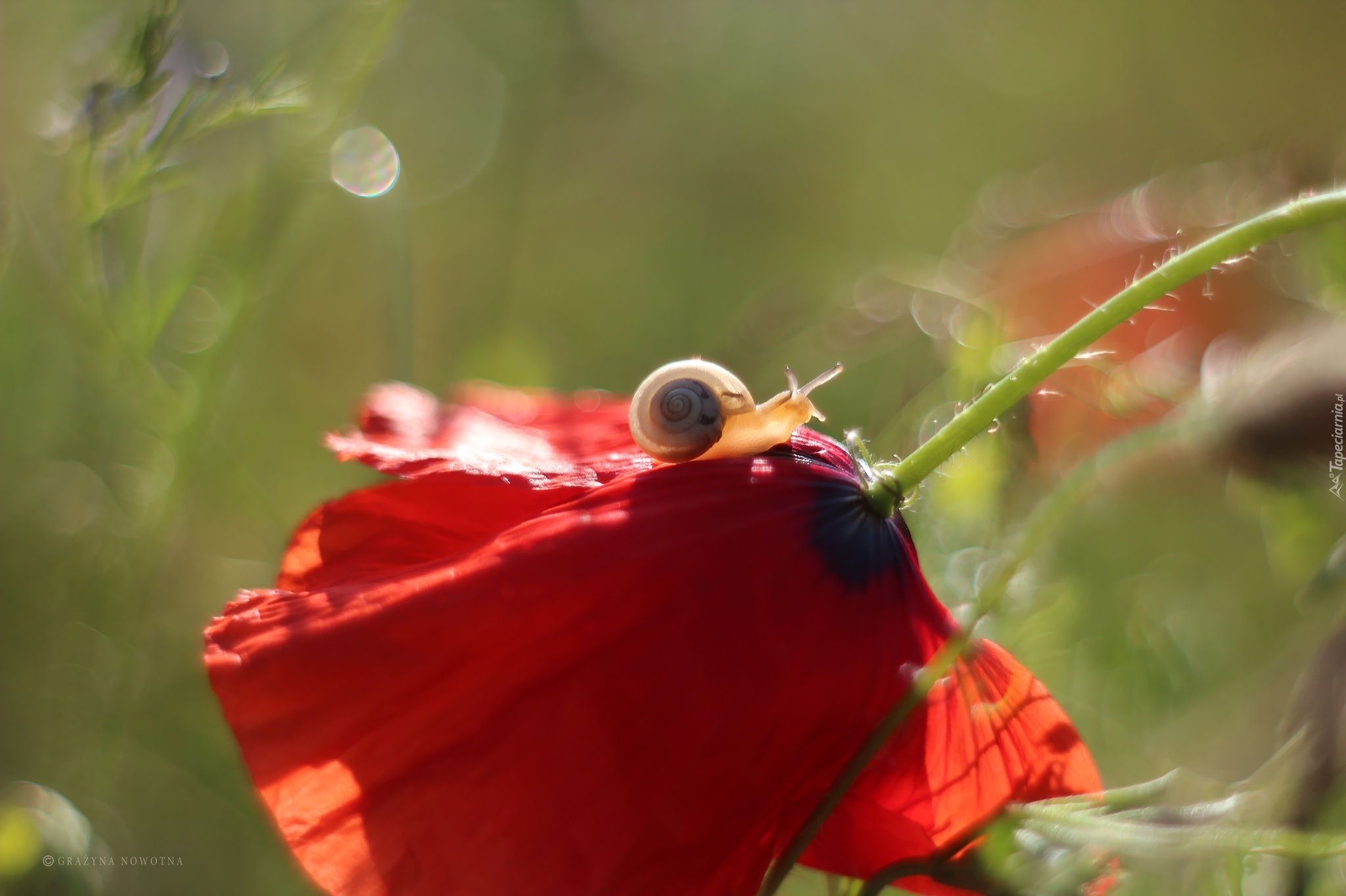 Edytor tapety: Ślimak, Mak, Czerwony, Kwiat