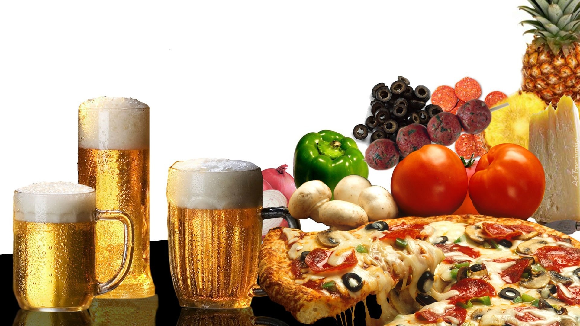 Edytor tapety: Piwo, Pizza, Warzywa