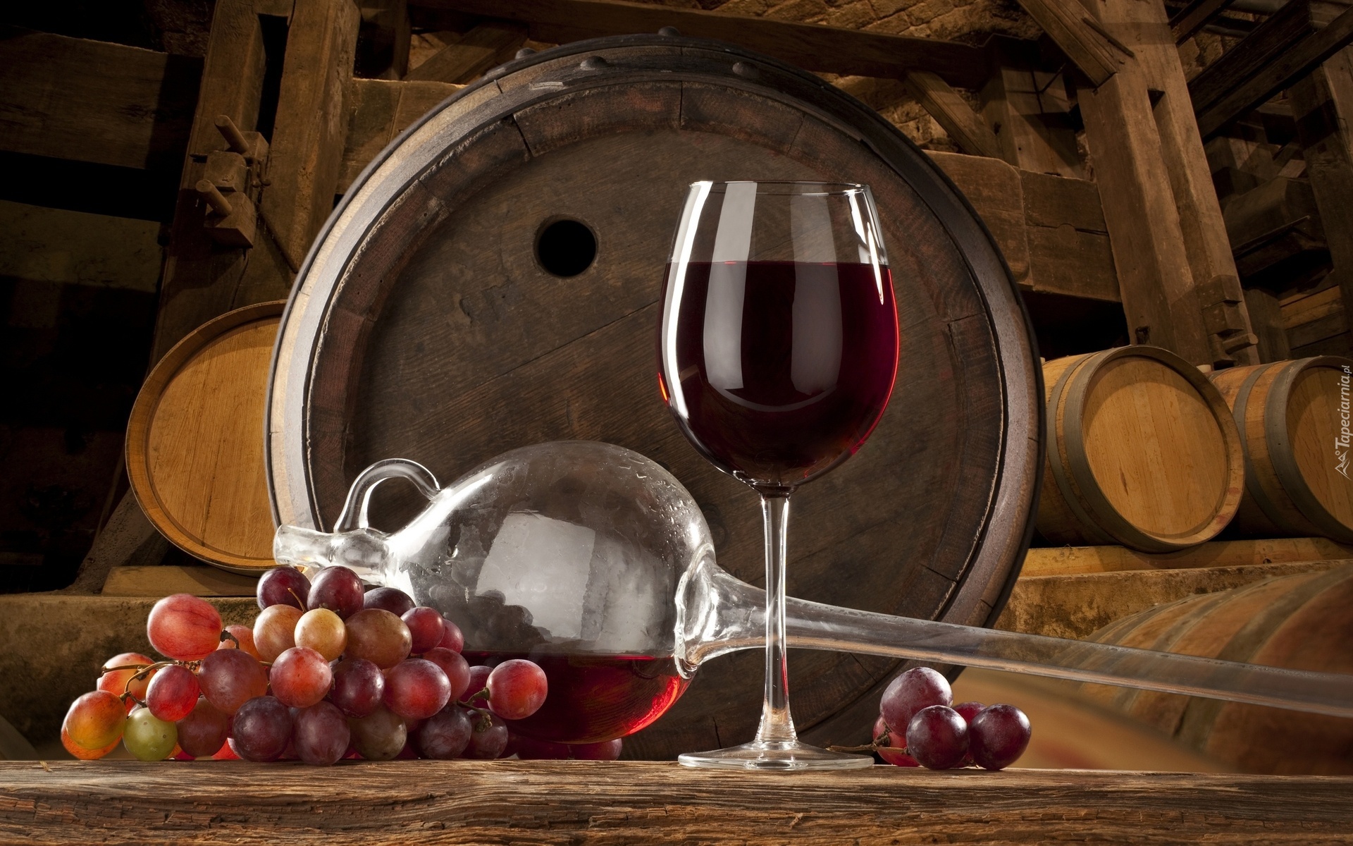 Edytor tapety: Wino, Kieliszek, Winogrona, Beczki