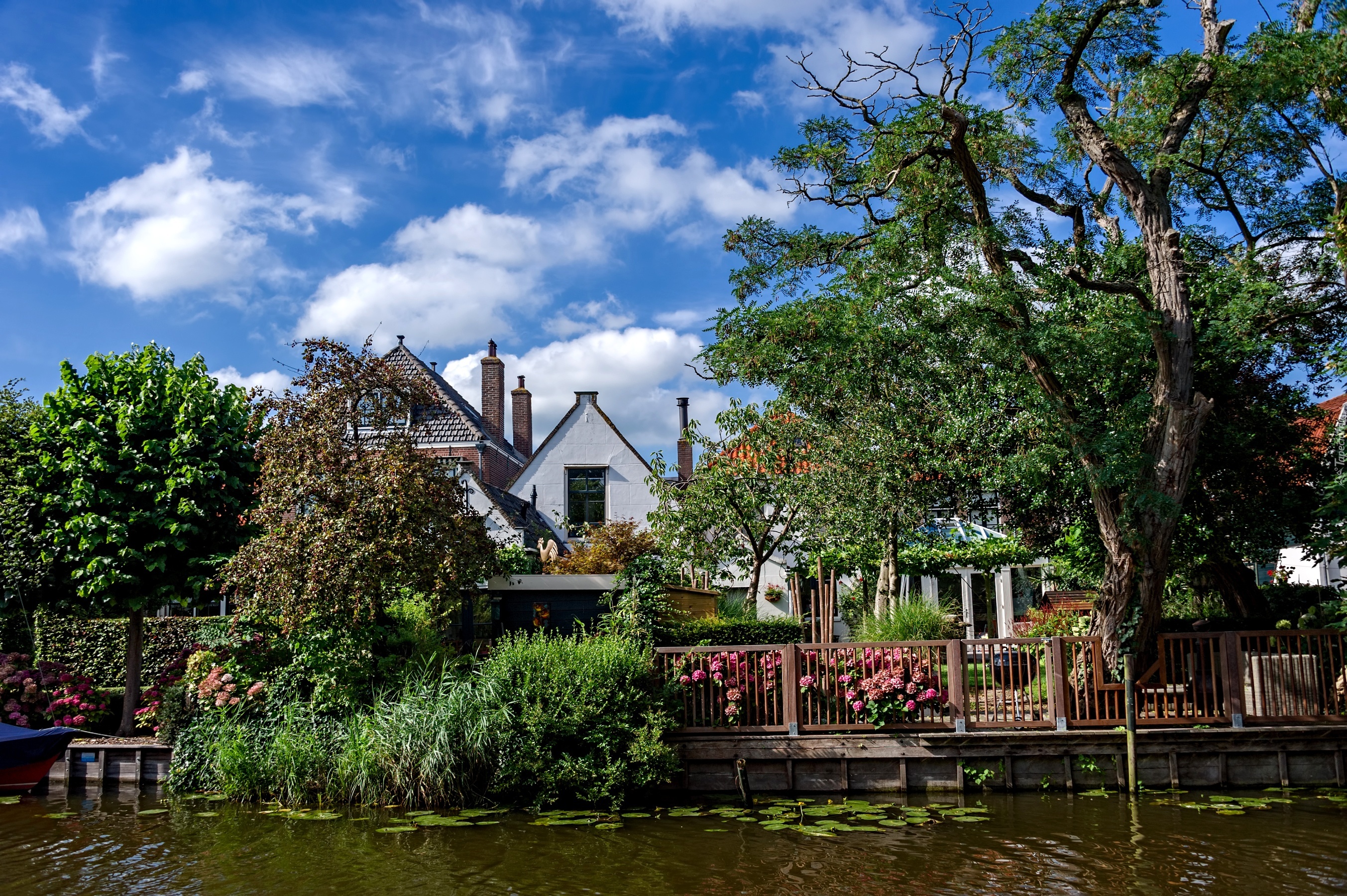 Edytor tapety: Domy, Drzewa, Rzeka, Lato, Holandia