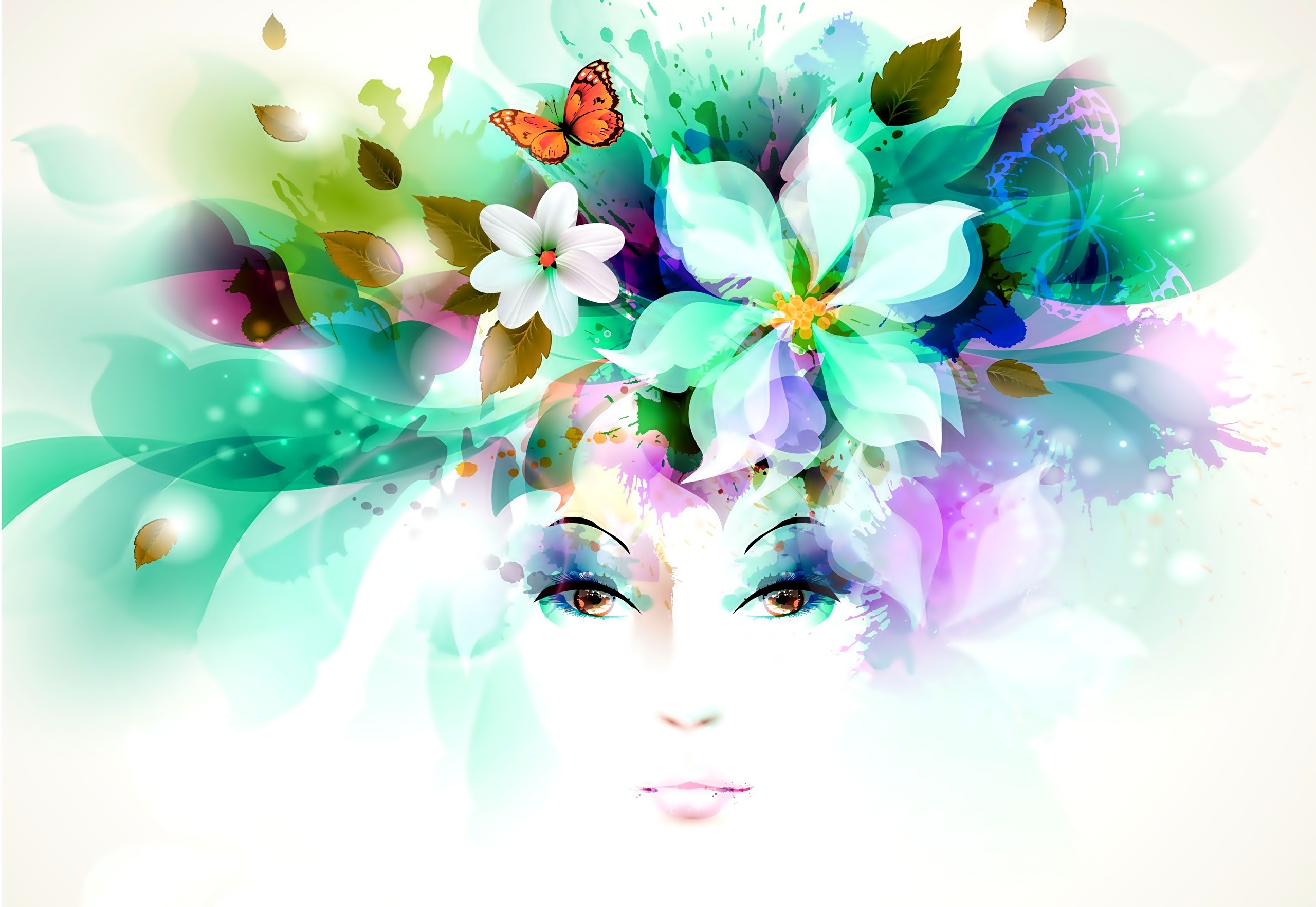 Edytor tapety: Twarz, Kobiety, Kwiaty, Motyl