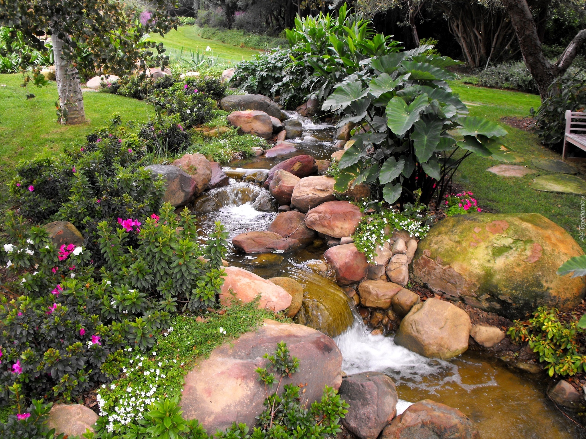 Edytor tapety: Ogród, Kamienie, Strumyk, Zieleń