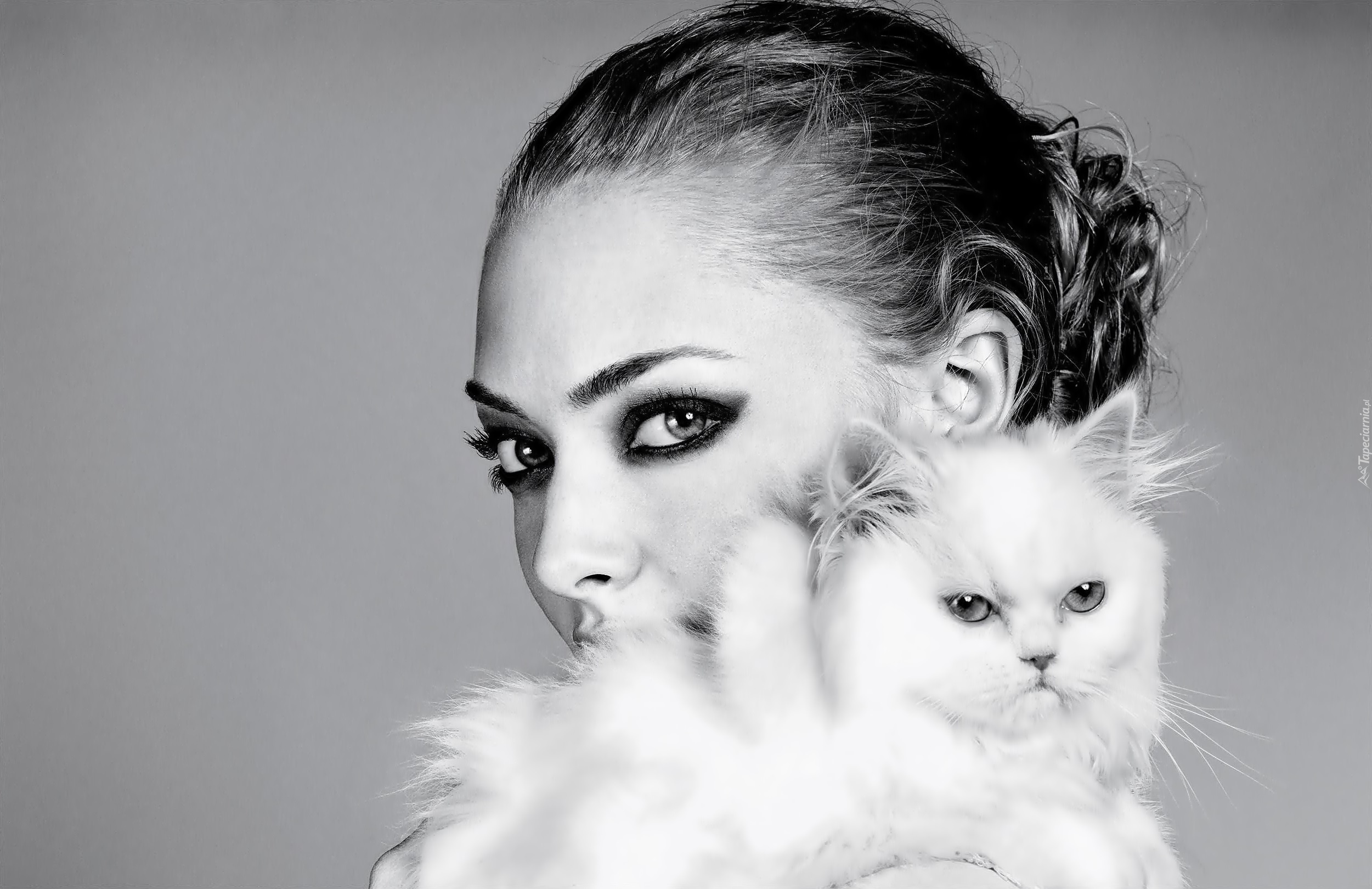 Edytor tapety: Amanda, Seyfried, Aktorka, Angora, Czarno-Białe
