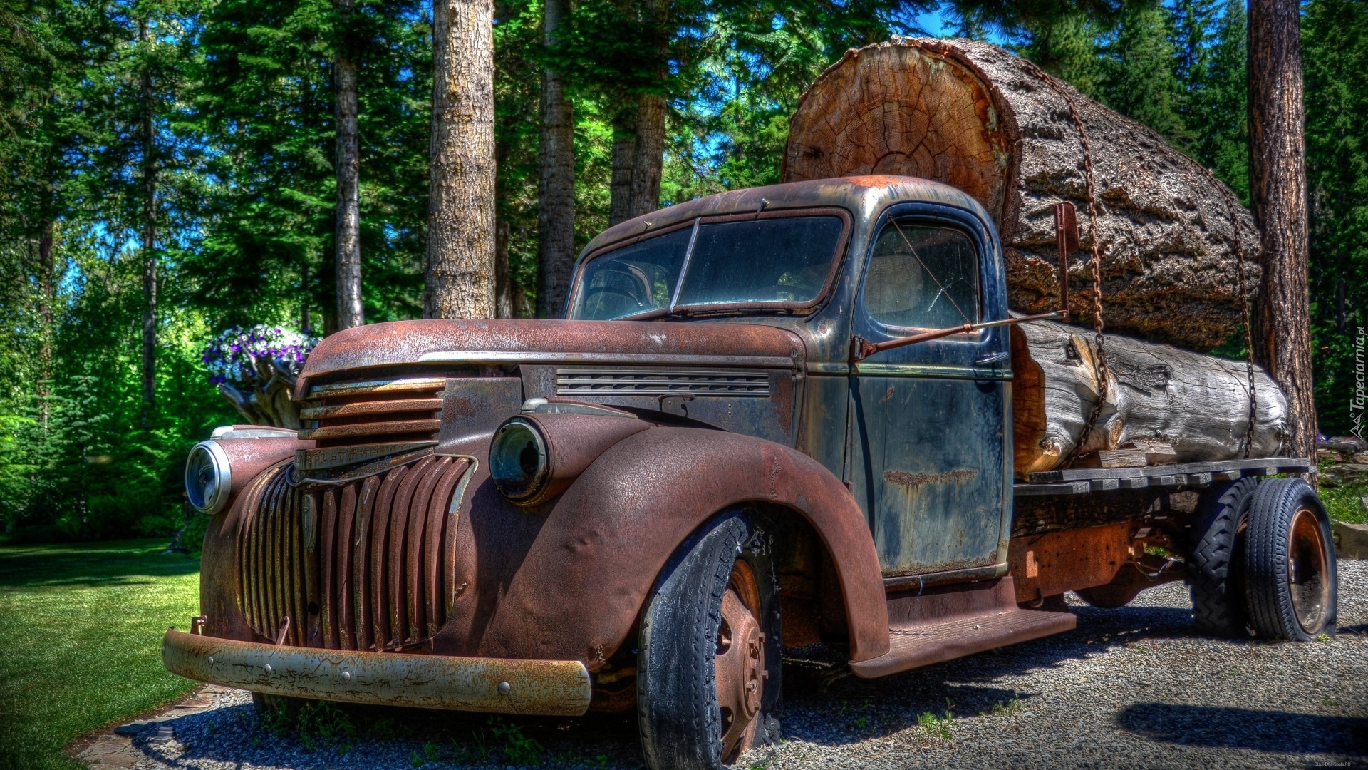 Edytor tapety: Zabytkowy, Samochód, Las, Drzewa, Ciężarówka