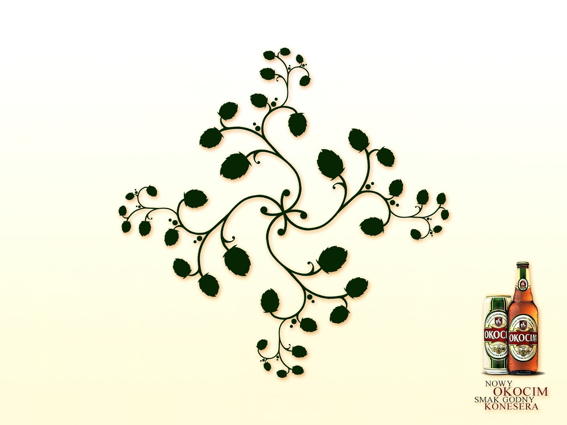 Edytor tapety: Piwo, Piwo Okocim, liście