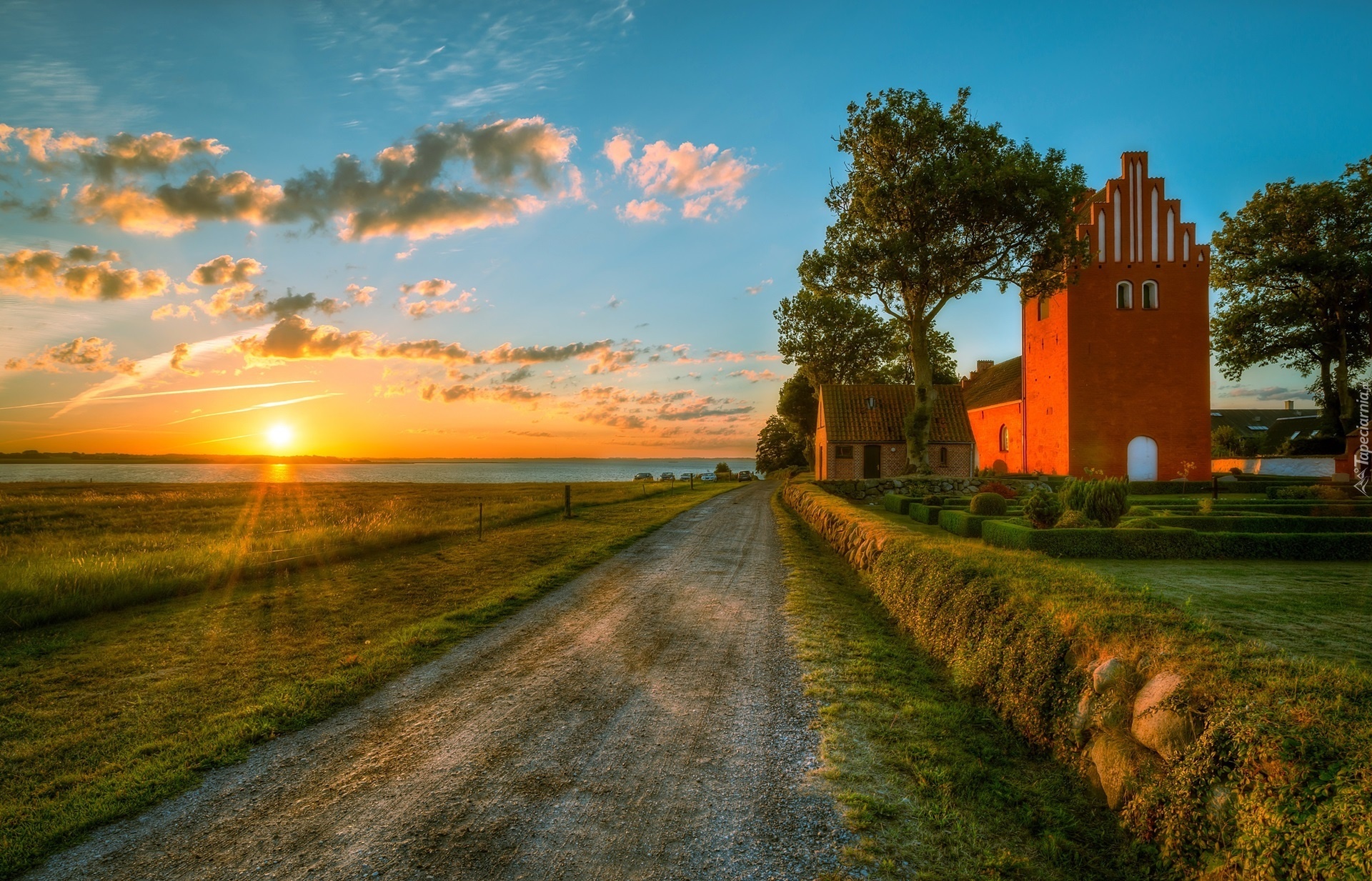 Edytor tapety: Wschód słońca, Droga, Kościół, Niemcy