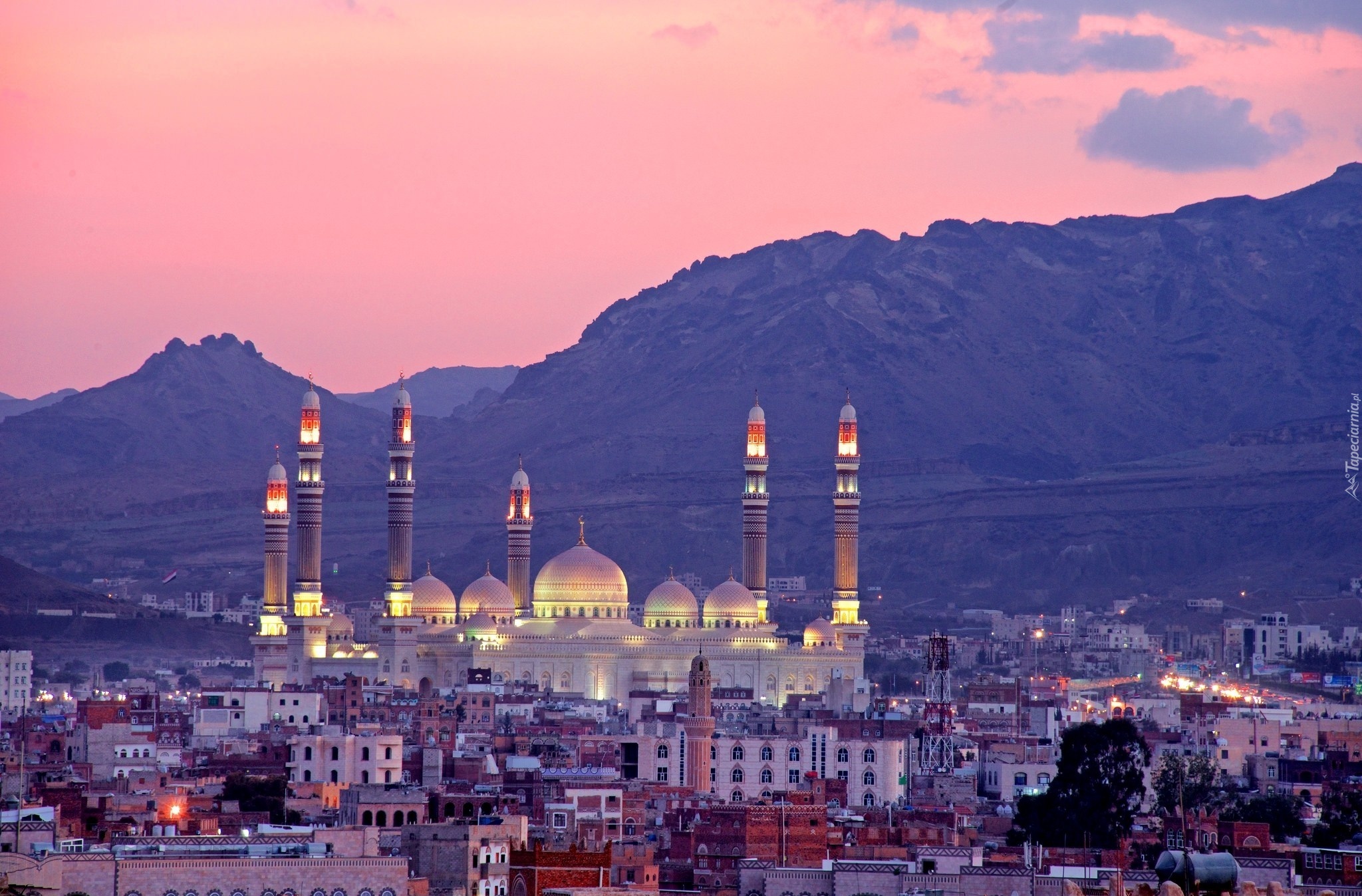 Edytor tapety: Jemen, Sana, Miasto, Meczet, Góry
