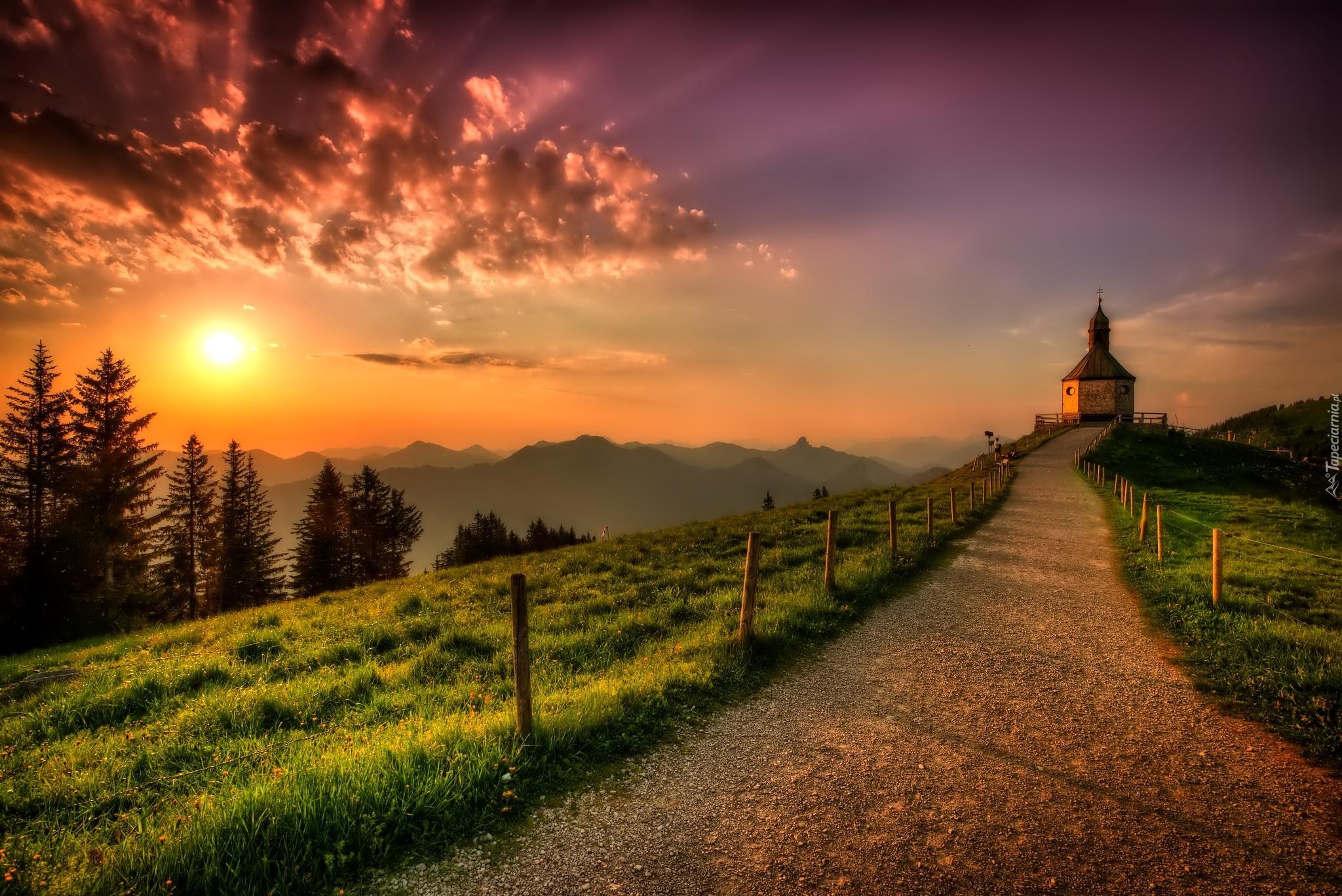 Edytor tapety: Droga, Chmury, Łąki, Cerkiew