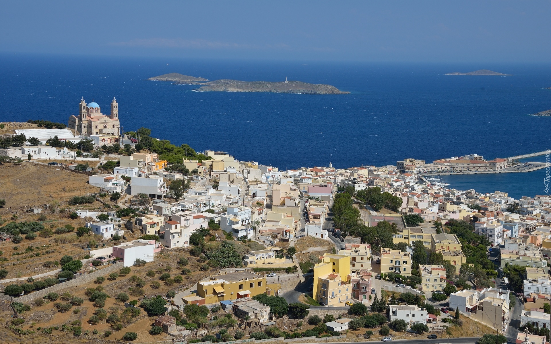 Edytor tapety: Grecja, Ermoupoli, Miasto, Wyspa