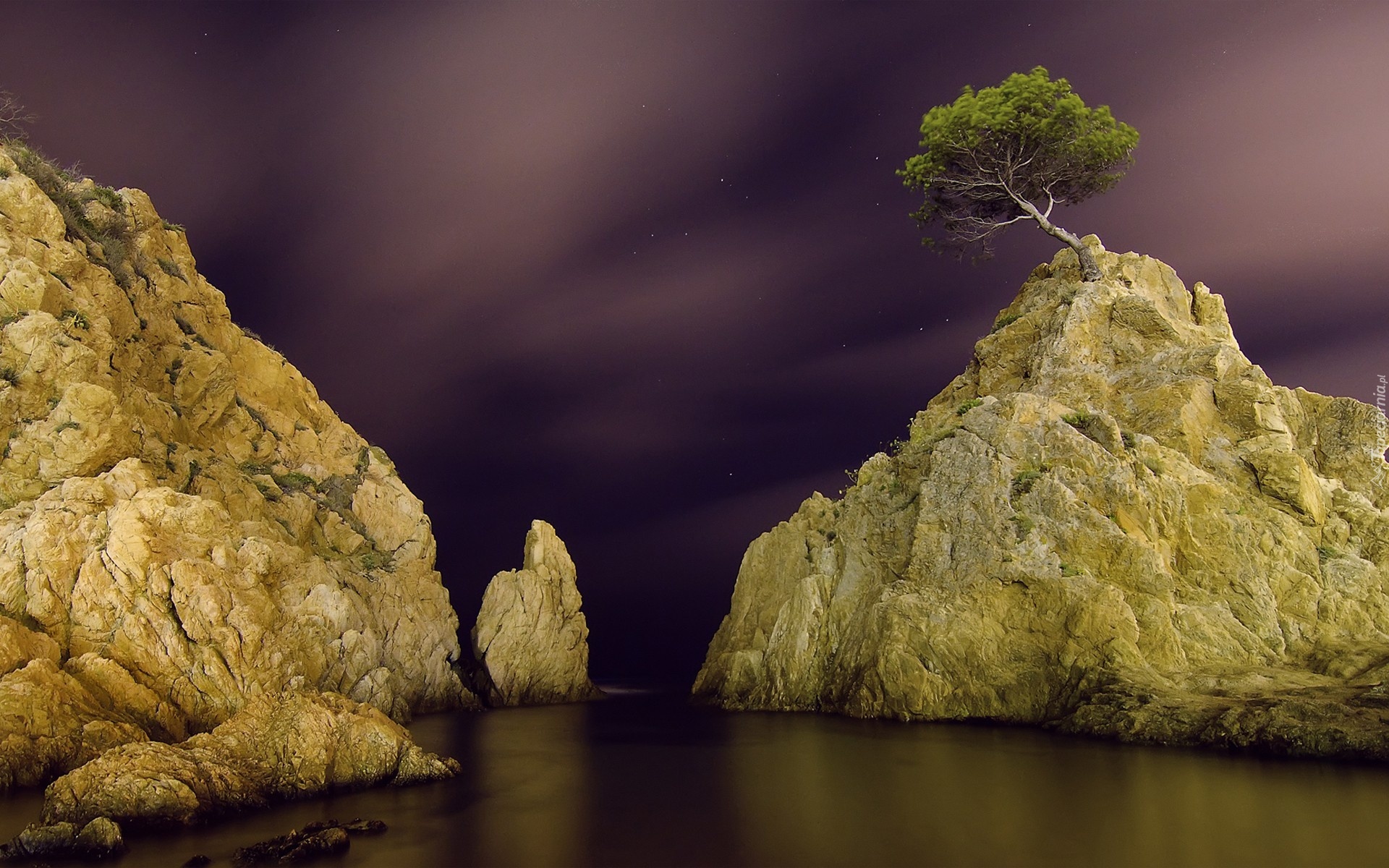 Edytor tapety: Skały, Morze, Drzewo, Noc