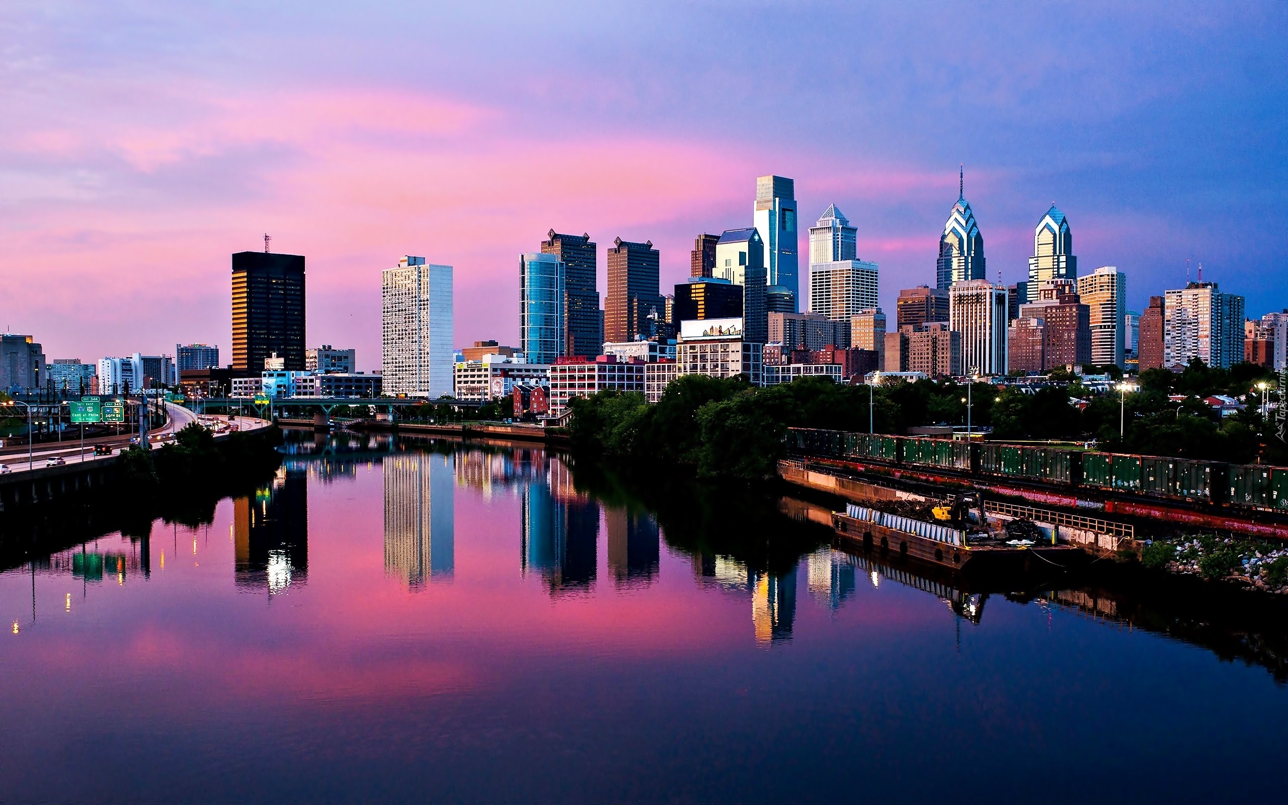 Edytor tapety: Drapacze, Chmur, Rzeka, Delaware, Świt, Filadelfia, Fragment, Miasta