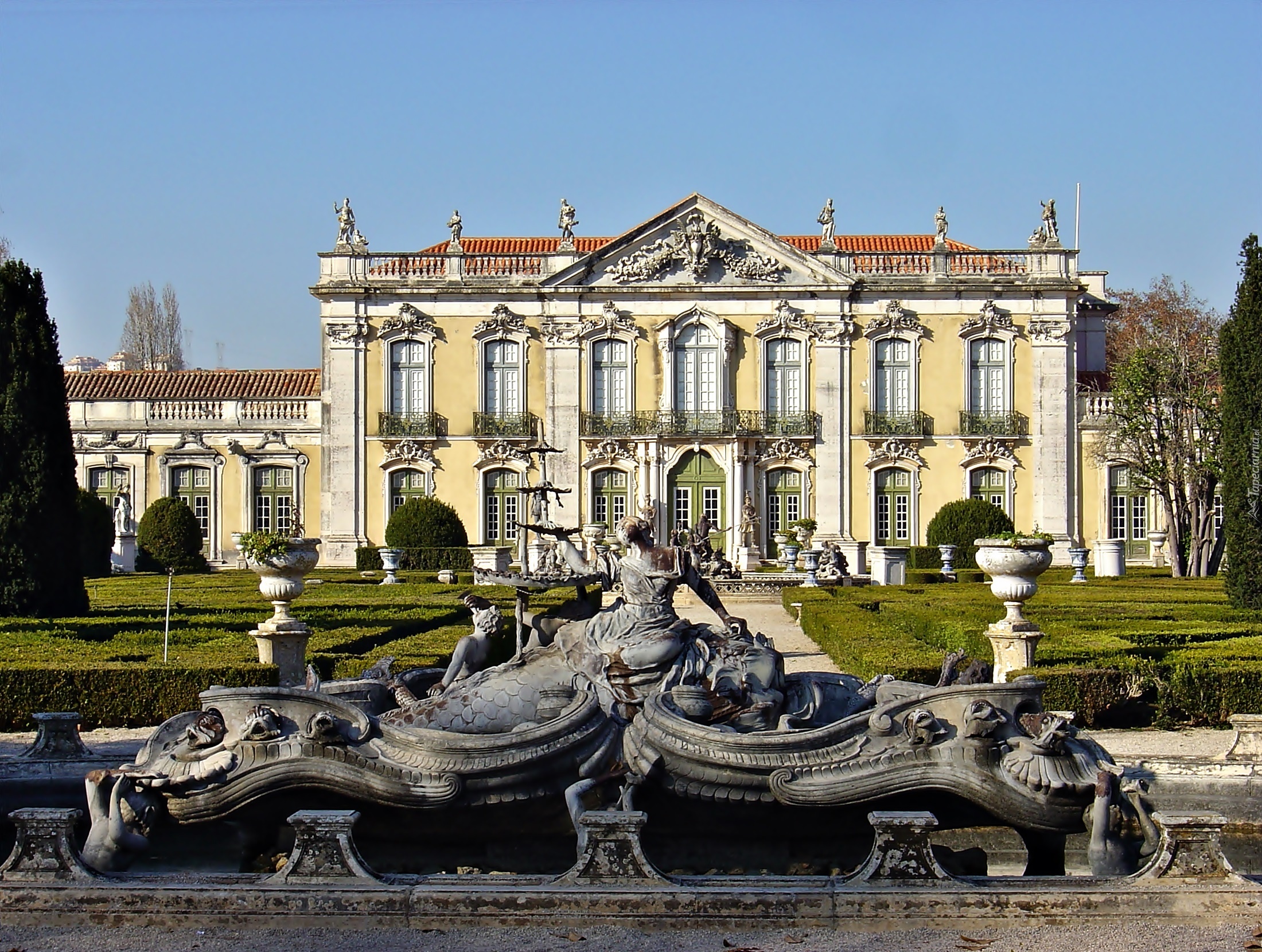 Edytor tapety: Pałac, Królewski, Queluz, Park, Posągi