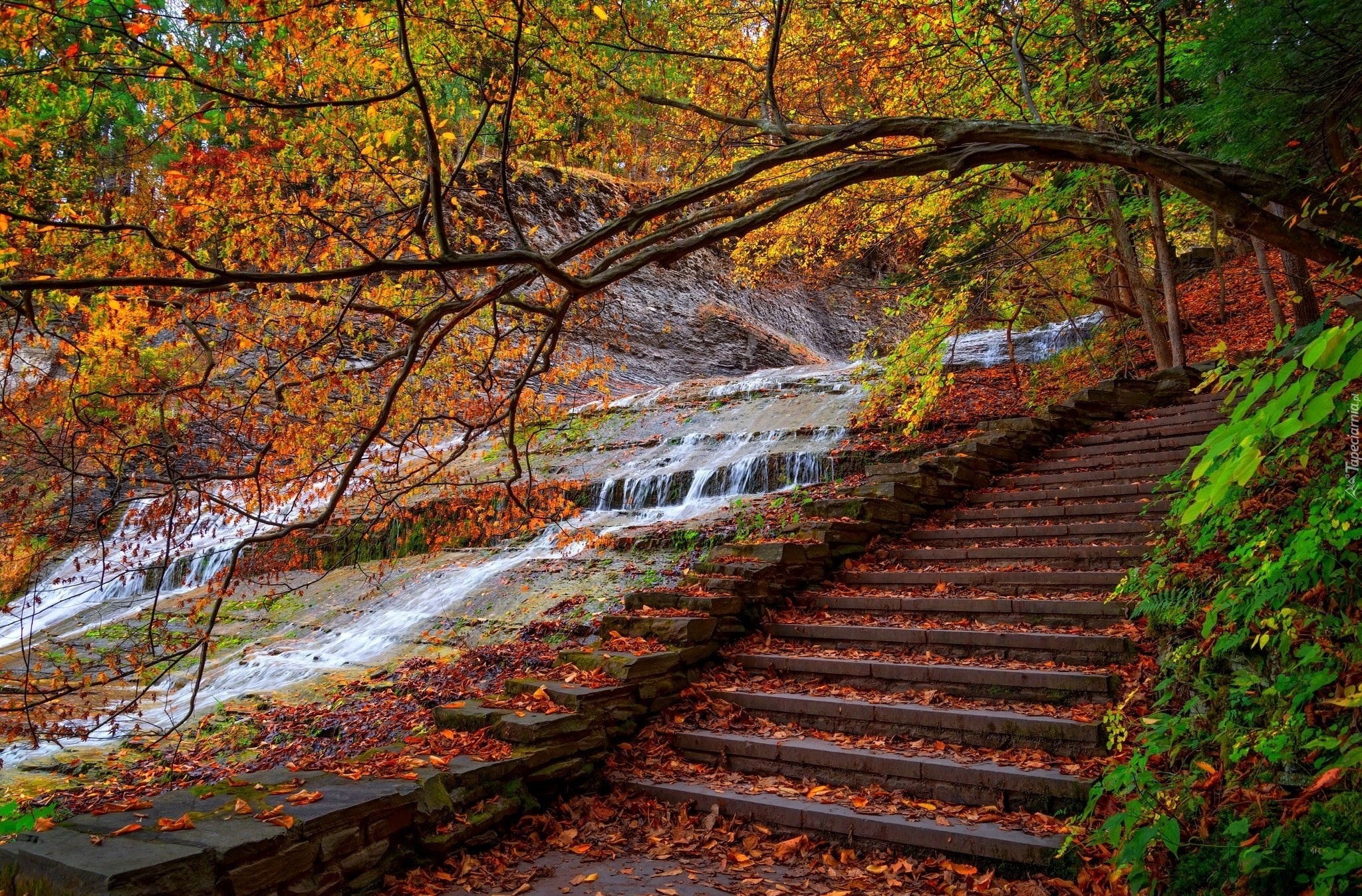 Edytor tapety: Park, Schody, Kaskada, Jesień