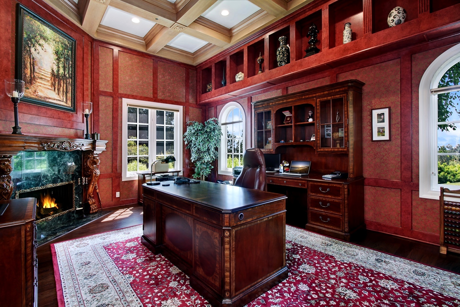 Edytor tapety: Wnętrze, Gabinet, Biurko, Kominek