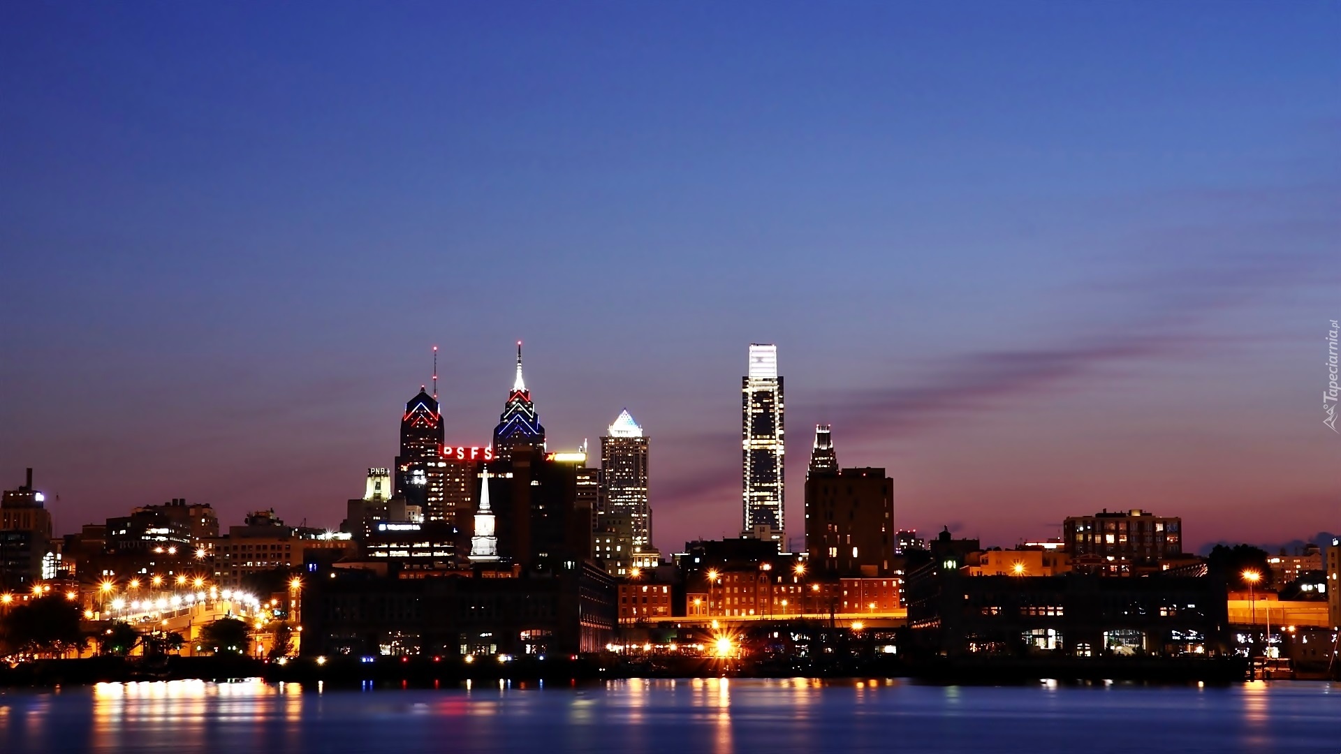 Edytor tapety: Drapacze, Chmur, Filadelfia, Miasto, Nocą