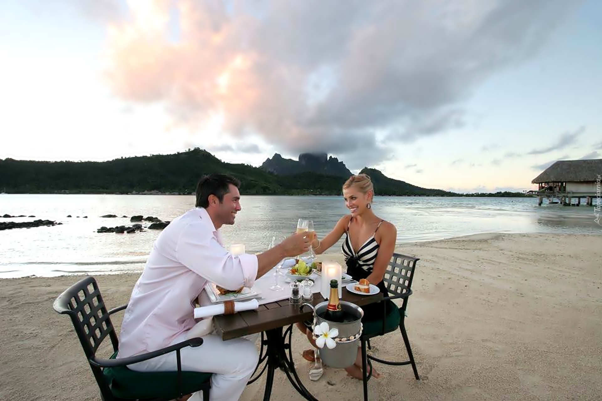 Edytor tapety: Morze, Plaża, Kobieta, Mężczyzna, Szampan