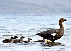 Edytor tapety: Jezioro, Dzika, Gęś, Z Młodymi